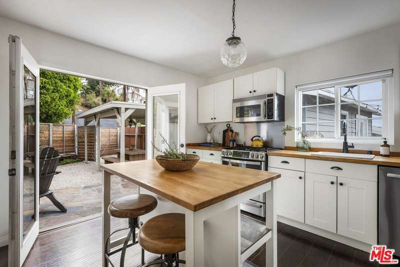 This jewel-box bungalow is the ideal spot in the highly coveted Garvanza pocket of Highland Park. In the middle of bustling Northeast LA - but completely gated, creating a private, quiet oasis. Short distance to Garvanza Park, Metro, and convenient to both the Figueroa and York corridors of Highland Park. The interior features a perfect indoor/outdoor flow - two sets of large french doors from the living spaces lead out to the low maintenance yard area. Covered carport for parking one off street car, can also double as a pergola for outdoor dining! Home includes central air and heat, updated kitchen and bathroom, and downstairs bonus room with laundry. Newly painted interior and updated systems. 355 Kirby is small, but packs a big punch - do not miss this sweet affordable gem!