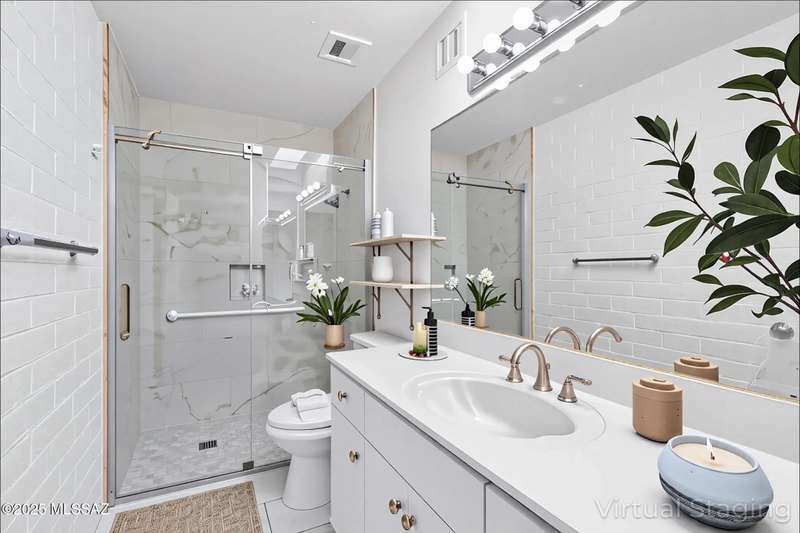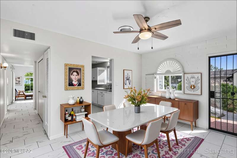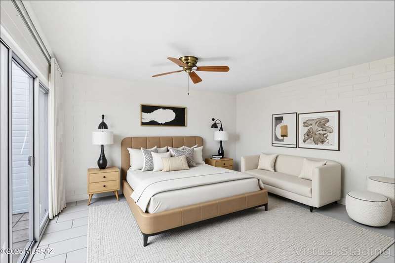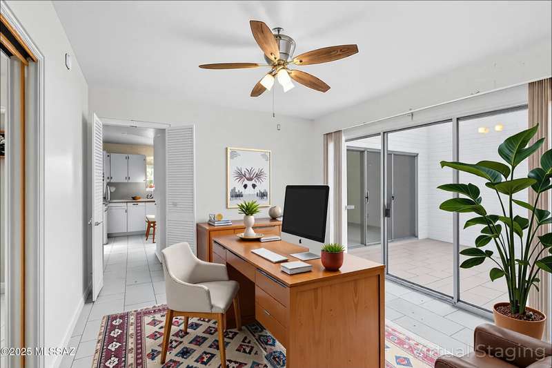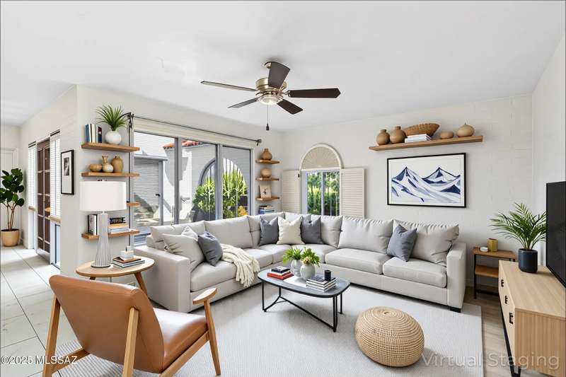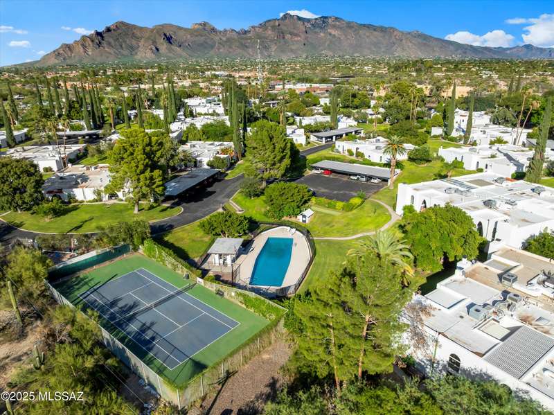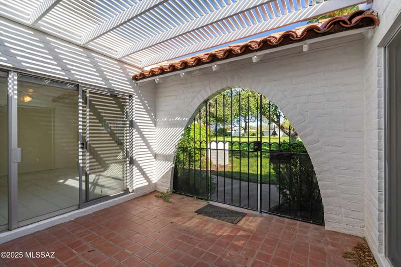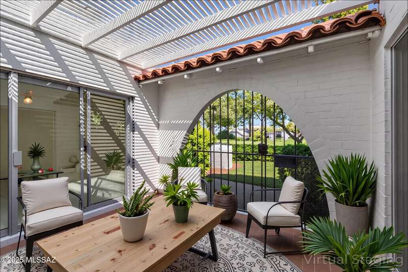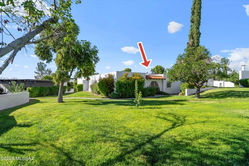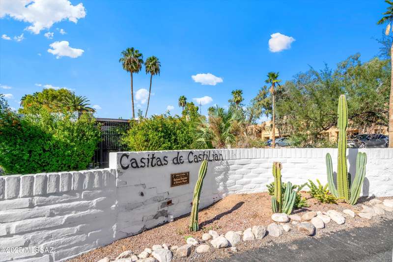 Tucked amongst the orange blossom, grassy knolls & lush foliage in this one of kind community, this rare 3-bed, single-story gem (1,607 sq. ft.) is one of the largest units in the historic 55+ Casitas de Castilian, designed by AZ architect Bennie M. Gonzales. Enjoy 2025 fresh paint & updated electric outlets, 2024 non-slip tile flrs, remodeled master bath, 2022 dishwasher & water htr and various other upgrades. Storage room & carport #11 are both yours. 2 private courtyards! HOA covers: well water, sewer, trash, exterior maint, landscape, streets & blanket insurance policy. Resident interior condo insurance optional per HOA! Low historic taxes almost 50% off at only $1,282.28 for 2025! Heated pool, tennis & more including socials. Coveted Las Lomitas casita comes with home warranty!