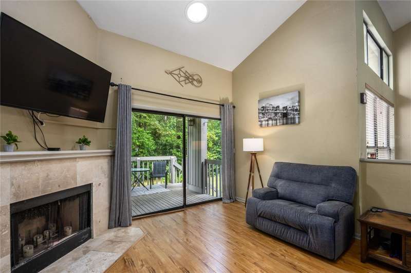 Under contract-accepting backup offers. Welcome to this charming 2-bedroom, 2-bathroom villa in Pebble Creek. Thoughtfully designed with a split floor plan, this home provides flexibility and privacy, featuring one bedroom and a full bath on the main level, ideal for guests or a home office, and a spacious primary suite with en-suite bath upstairs. The cozy living area is centered around a fireplace, creating a warm, inviting atmosphere. The kitchen flows seamlessly into the dining area with a convenient breakfast bar, perfect for casual meals or entertaining. Ample closet space throughout ensures everything stays organized and tucked away. Step outside to your private sanctuary: a large, covered wood deck surrounded by lush greenery, perfect for relaxing, entertaining guests, or enjoying your morning coffee in peace. Priced to sell, this home offers an exceptional opportunity for those seeking comfort, character, and convenience. Don’t wait, schedule your showing today!