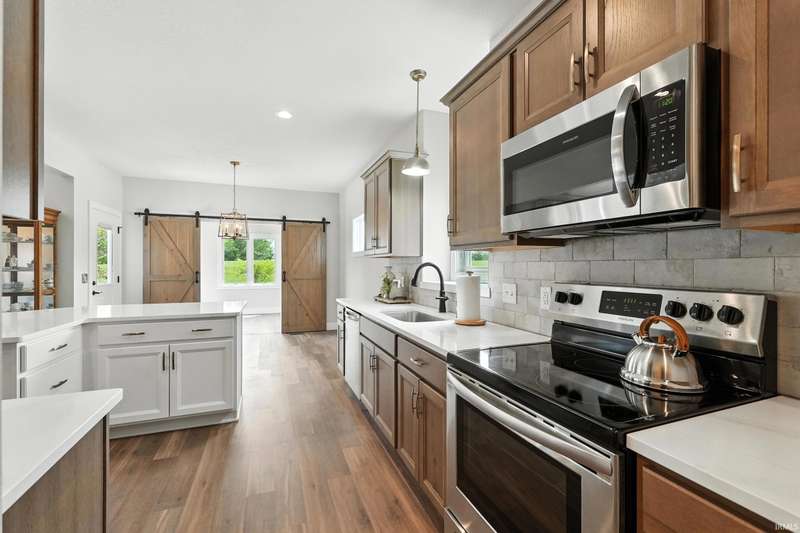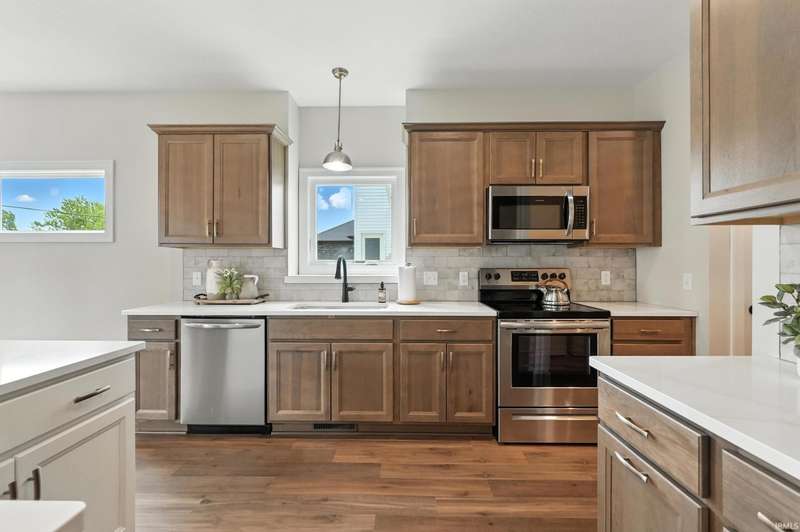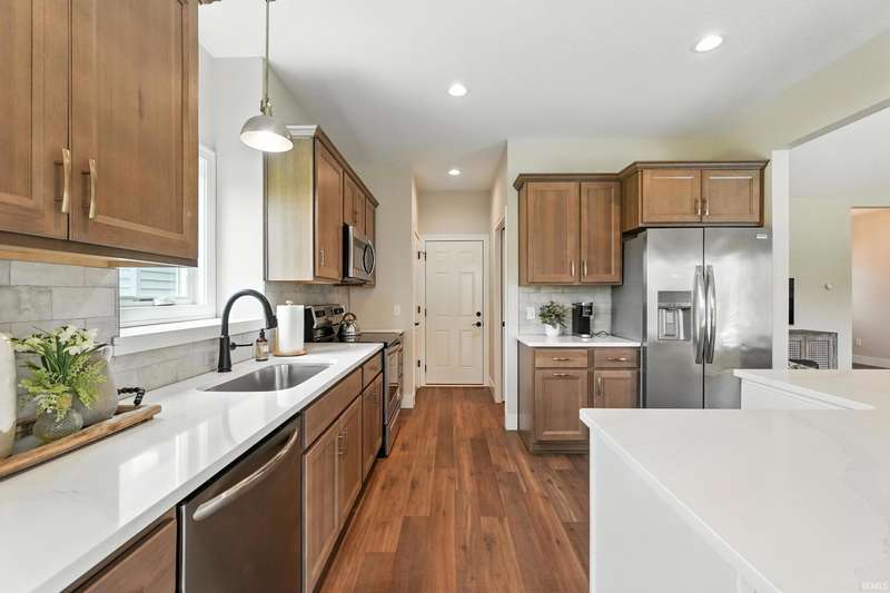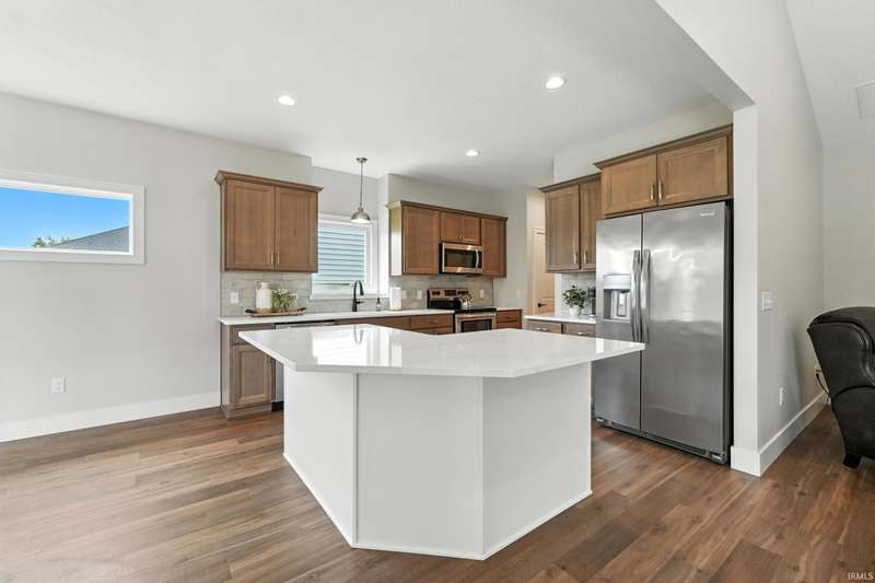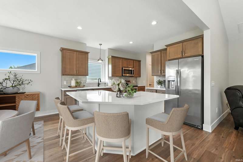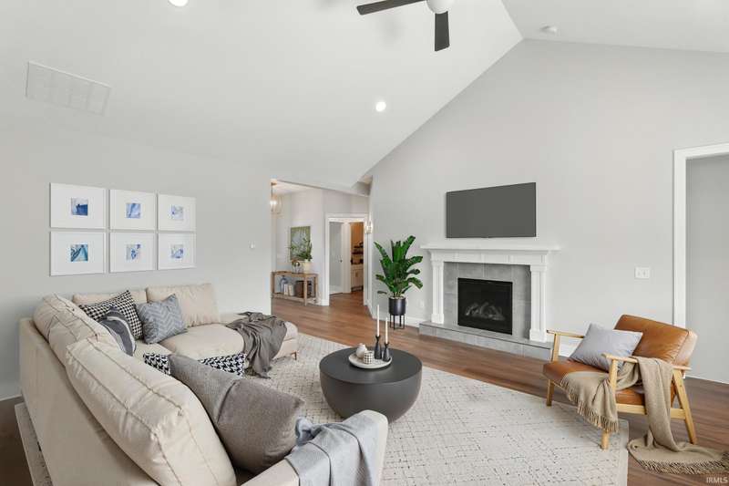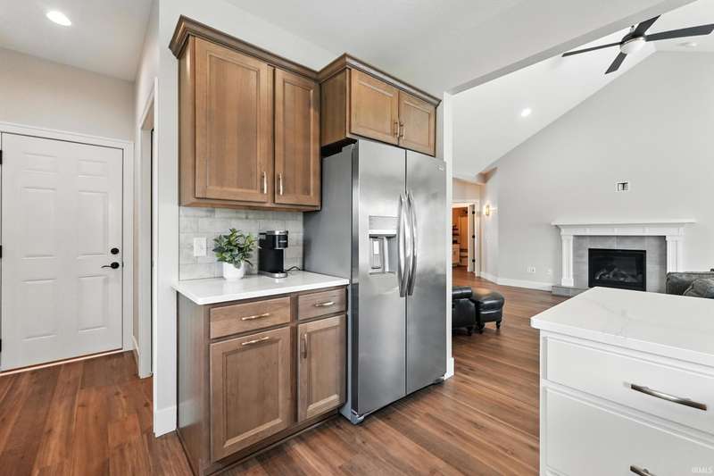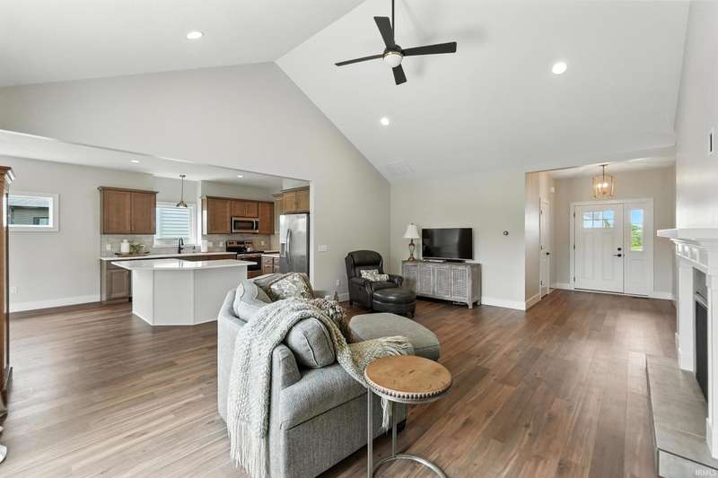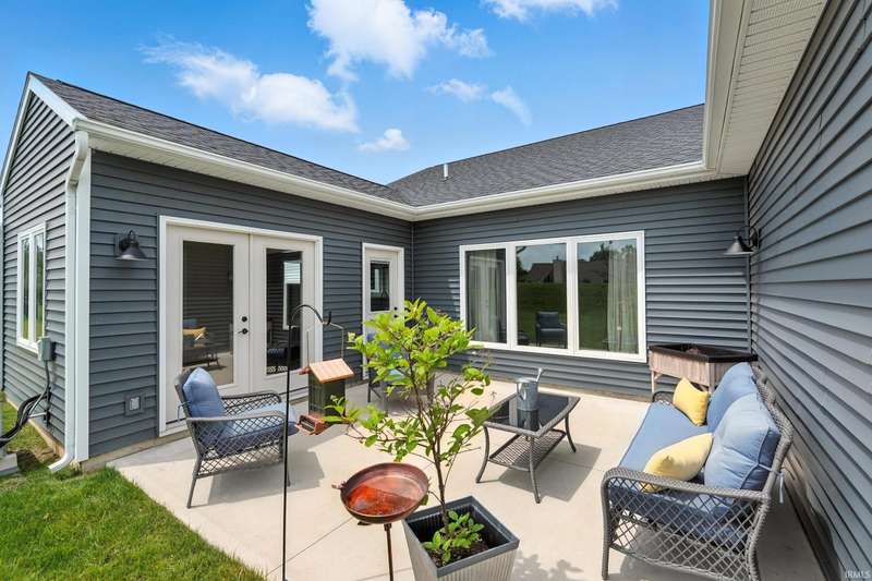 STUNNING SACS VILLA PERFECTLY LOCATED IN A PEACEFUL, PRIVATE NEIGHBORHOOD ONLY 1/4 OF A MILE FROM THE NEW SW PARKVIEW HOSPITAL AND SW LUTHERAN HEALTH CLINIC! This well-appointed 3 BR, 2 full BA home offers an open concept layout, where the kitchen, dining area, and great room are seamlessly connected for both daily living and entertaining. Offering almost 1,740 sq.ft. of living space, this home is highlighted by high ceilings, large windows, and elegantly upgraded finishes including Benjamin Moore Pale Oak paint and lighting throughout. The kitchen boasts custom cabinetry, quartz countertops, a beautiful stone backsplash, and an expansive island. Enjoy cozy evenings by the fireplace in the cathedral-ceiling great room or step out onto the patio and take in the private backyard with no neighbors in view. The primary suite is a true retreat, with crown moulding, a custom walk-in closet, and a luxurious en-suite bathroom complete with a gorgeous tiled walk-in shower and a double vanity. Additional amenities include a 4-season room with loads of natural light, gorgeous landscaping, a spacious 2-car garage, and a partially-floored attic for additional storage. Association dues cover lawn mowing and upkeep of the common areas. Snow removal is available for an additional cost. Located in the coveted Aboite township, this home is within walking distance to the Aboite Trails, and has easy access to schools, hospitals, shopping, and all Fort Wayne has to offer. Call your Realtor and schedule a tour today.