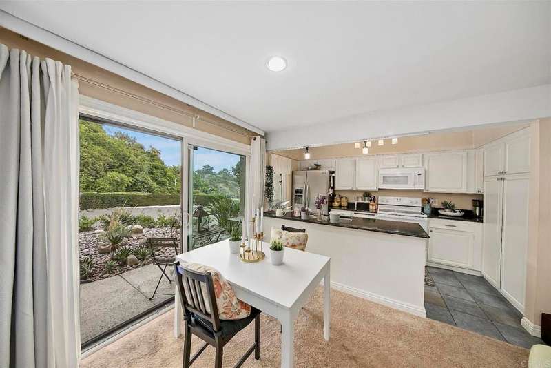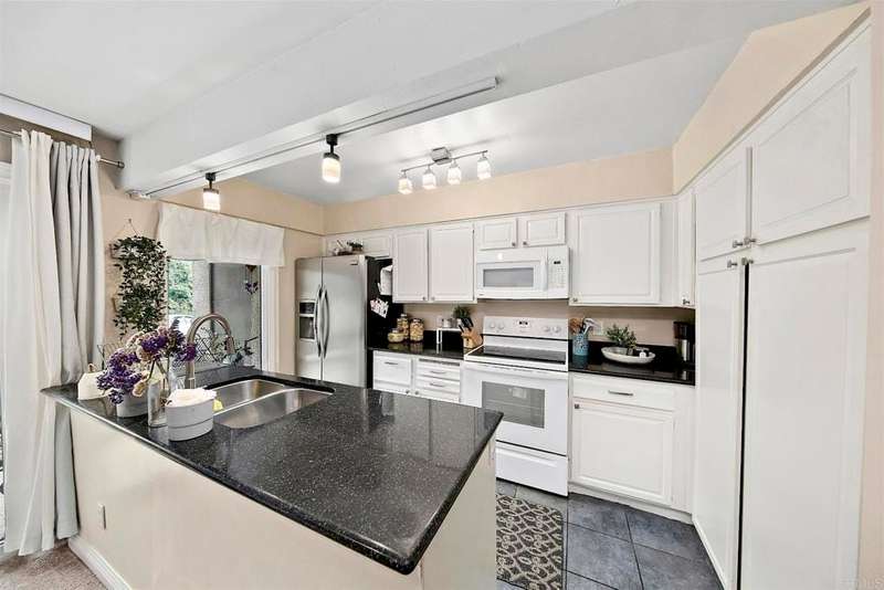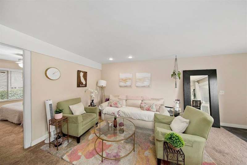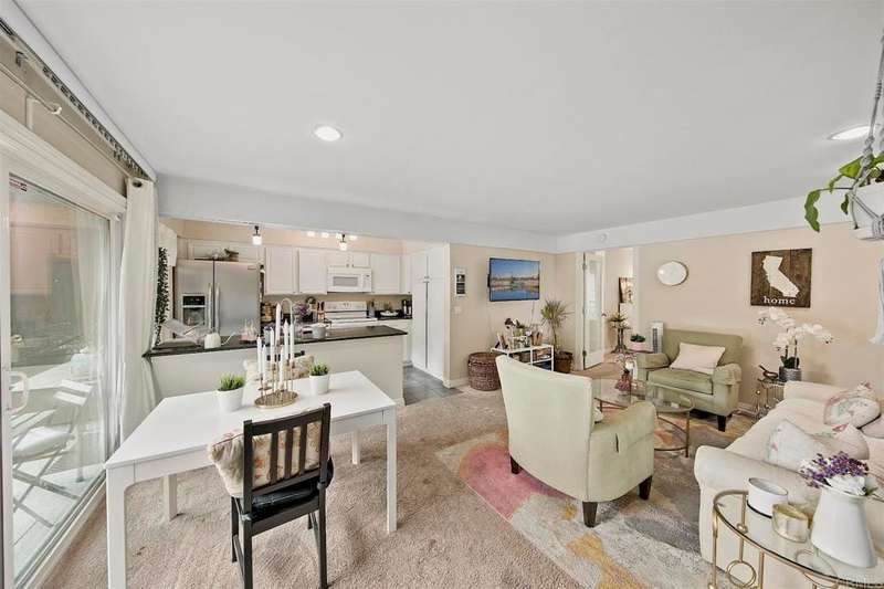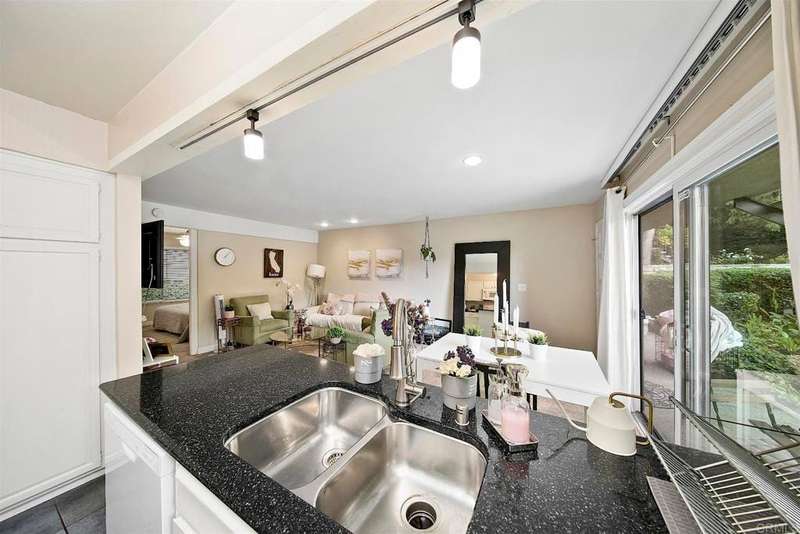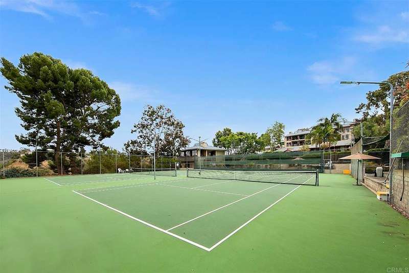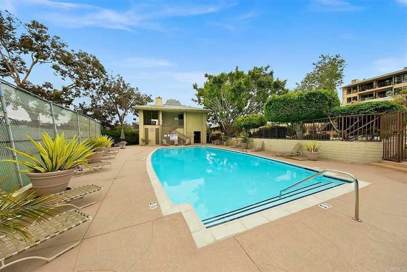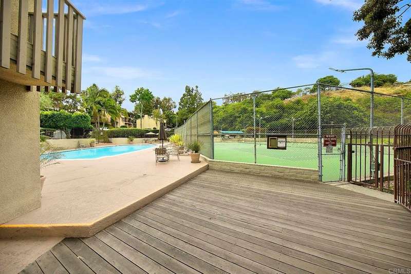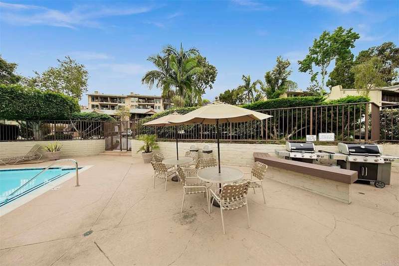 Quaint and cozy - Located at the end of a cul-de-sac in a canyon like setting, this 1 BR unit is close to Hillcrest shopping and dining. Newer grey vinyl flooring (not shown in photos) and freshly painted. Bedroom features large walk in closet, ceiling fan and stackable in unit laundry. There is a secured parking space in underground garage PLUS another space near unit. Complex has pool, tennis courts, spa and club house. Unit will be available for showings Open House style - WED Aug 13, 2025 FROM 4-6 PM and THURSDAY Aug 14, 2025 4-6 PM.