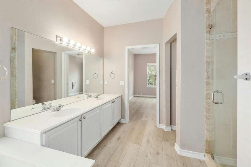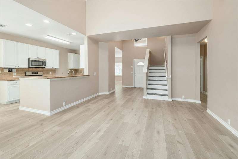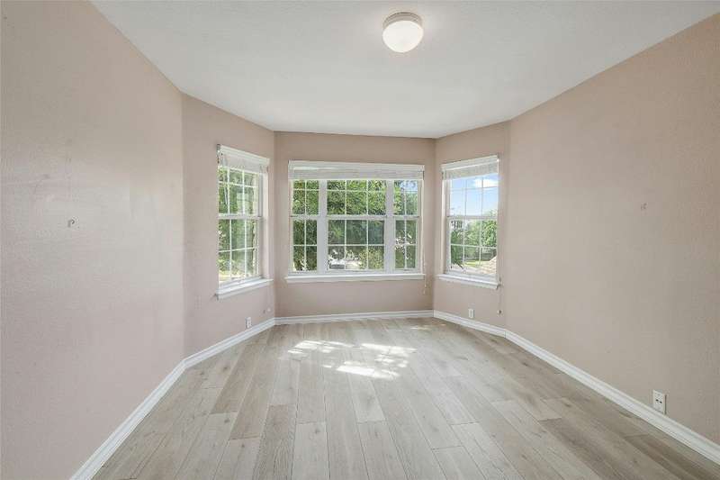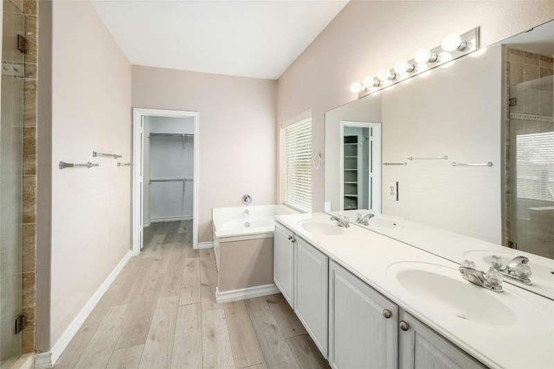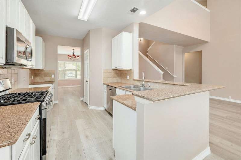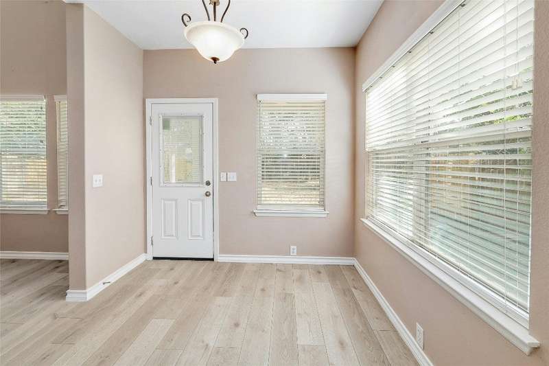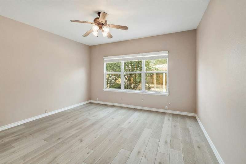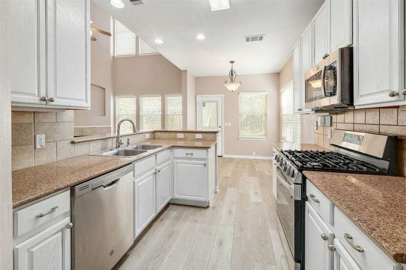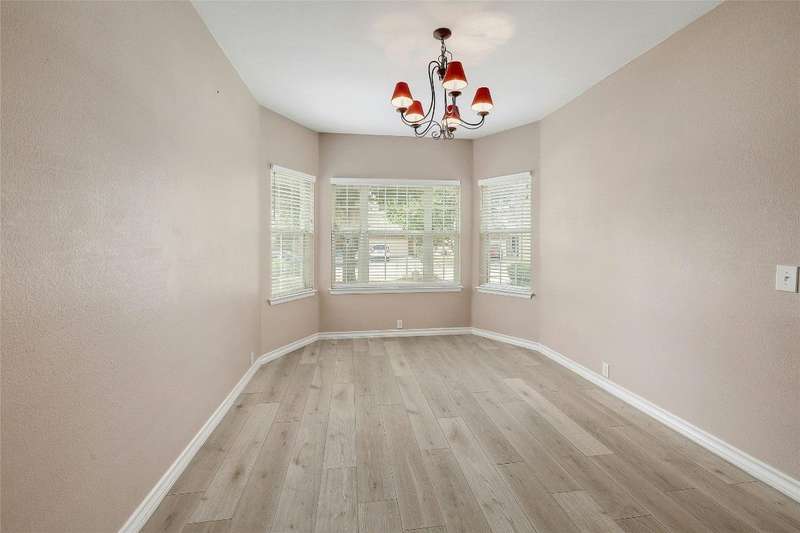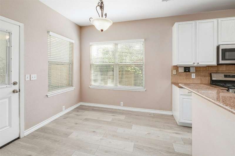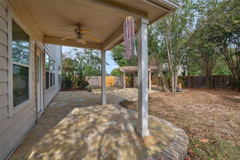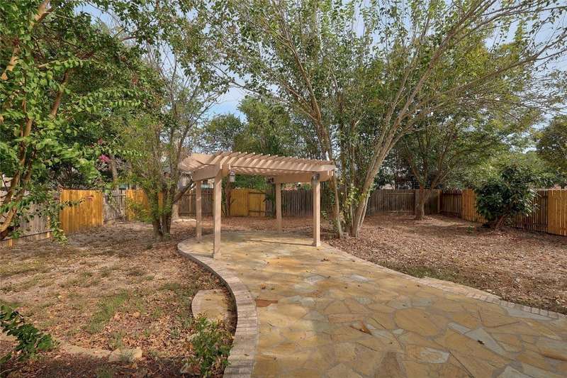 New Flooring throughout home to accent hard tile. No Carpet. Kitchen w/Granite, 42" cabinets. Formal Dining and Breakfast area. New paint inside. Frameless shower in Owners suite with garden tub. Covered patio with extension to covered pergola.
