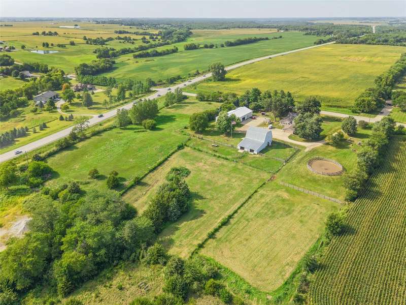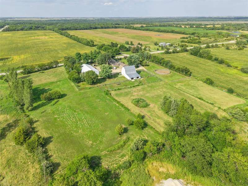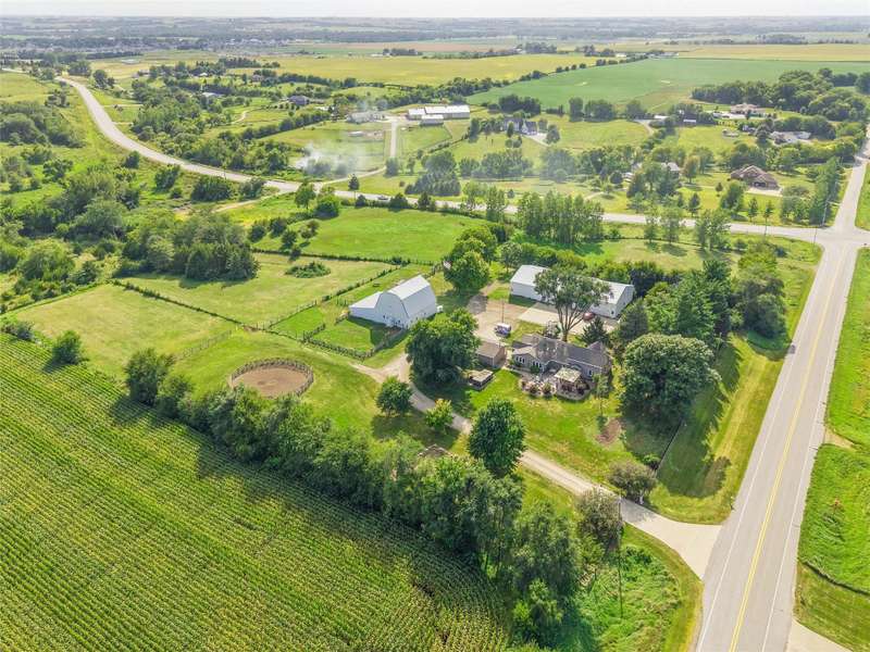 Farmstead setting acreage with 7.6 acres, 3 BR, 4 bath, 3,929 SF farmhouse, 50x104 (1,432 SF) metal storage building blt in 1992, 36x44 classic barn built in 1935, 2-car heated detached garage, 30 horse round riding pen & huge riding arena and fenced pasture. Located on a paved road just 2.6 miles north of Granger, 11 miles north of I-35/80 and just 1.4 miles to Jester Park Nature Center & Golf Course. The metal building is great for vehicle storage, indoor sports like pickleball, basketball, hockey, volleyball, golf or roller blading. Enjoy outdoor activity like horses, livestock, recreational 4 wheeling or dirt bike riding on the motor cross trail, target shooting, hunting, or just quiet living. The home has an open plan with large living room with direct vent fireplace, partially updated kitchen, first floor primary bedroom, first floor laundry, finished basement with rec room for pool or ping pong & theater rm. Utilities are propane HVAC, septic, Xenia rural water & 2 private wells for outside water, Rise Broadband or Verizon internet. Updates include white trim & doors (2019), furnace (2017), central air (2017), roof (2016), wrought iron fence & automatic security gate (2016), propane powered generator in case the electricity is out (2013), all new vinyl windows (2012), outdoor kitchen & patio (2011), wood floors on first floor (2010). This could be the acreage you have been looking for.