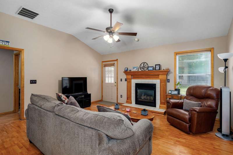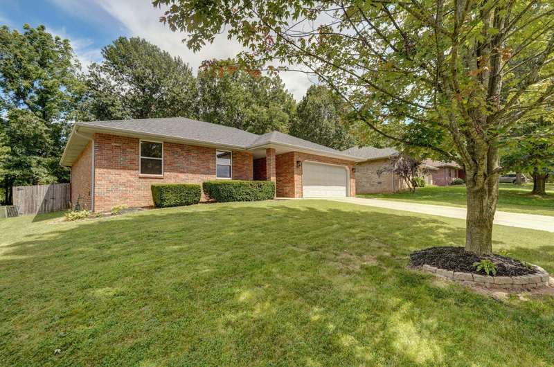 Beautiful all-brick home featuring 3 spacious bedrooms and 2 full bathrooms, located in the highly desirable Kickapoo School District. The generous kitchen offers a dining area, tile flooring, stainless steel appliances, and ample cabinetry ideal for both daily living and entertaining. The inviting living room showcases laminate wood flooring and a cozy gas fireplace with a blower for added comfort. Enjoy the privacy of a split-bedroom floor plan, with the master suite offering a walk-in closet and a full en-suite bath. Two additional bedrooms are comfortably carpeted and thoughtfully placed for functionality and privacy. Step outside to a fully privacy-fenced backyard complete with a large deck and patio perfect for relaxing or hosting. Mature trees beyond the fence provide a peaceful and scenic backdrop. Additional highlights include a 5-year-old roof, a quiet dead-end street, and a prime southwest Springfield location. A perfect blend of comfort, convenience, and charm don't miss this opportunity!