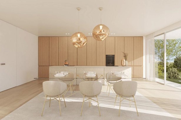 On the ground floor, soaring 5-meter-high ceilings create an impressive open-plan living and dining area with a state-of-the-art kitchen. This level also includes a stylish guest WC and a luxurious master suite complete with a walk-in closet and en-suite bathroom.