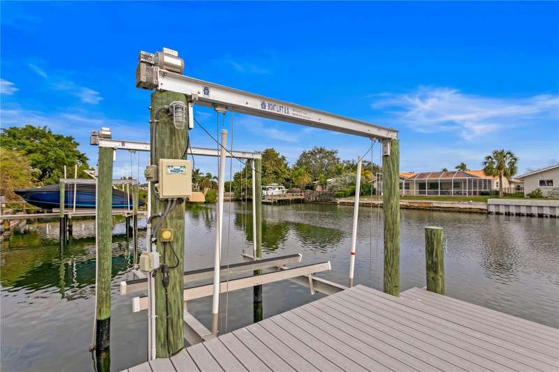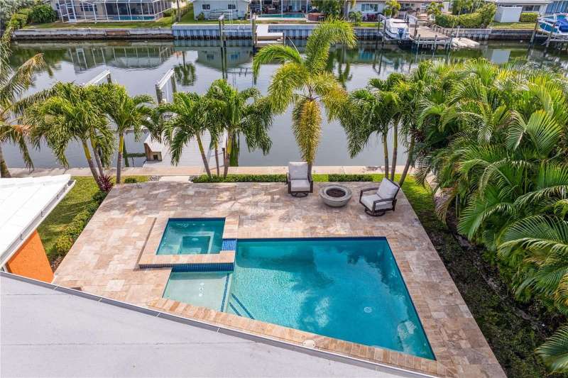 Don’t miss your opportunity to own this stunning home in the highly sought-after waterfront community of Venetian Isles! This beautiful 4-bedroom, 3-bath residence offers the perfect blend of luxury, comfort, and modern coastal living. Step inside to an expansive open-concept layout where the family room, kitchen, and dining area flow seamlessly into a screened lanai and beautifully landscaped backyard—perfect for effortless indoor-outdoor entertaining. The home welcomes you with a spacious foyer or a convenient mudroom entrance from the two-car garage. Throughout the living spaces, wood-look ceramic tile creates a warm, elegant ambiance. At the heart of the home, the chef’s dream kitchen features a large U-shaped eat-in island with marble countertops and backsplash, high-end Café series stainless steel appliances, and stylish custom cabinetry. The interior laundry room is as functional as it is beautiful, complete with Whirlpool Cabrio washer and dryer, built-in cabinetry, utility sink, and marble tile accents. Thoughtfully designed for privacy, the home offers a split bedroom layout. The first guest bedroom enjoys a beautifully appointed full bath, while two additional bedrooms in a separate wing share a spa-like bathroom with Danze fixtures and designer finishes. The private master suite is a true retreat, showcasing a luxurious marble bathroom and a generous walk-in closet. Enjoy true Florida living with hurricane-rated sliding glass doors that fully pocket back, connecting your main living spaces to the screened lanai and creating a seamless indoor-outdoor experience. Whether you're relaxing by the heated saltwater pool and spa, or enjoying tranquil canal views from the cozy firepit corner, this backyard oasis has it all. Boaters will appreciate the composite dock with electric, water, a 10,000 lb. boat lift, and updated seawall (2017). The lush landscaping provides ample privacy and is enhanced by elegant outdoor lighting for evening ambiance. Best of all, this home has experienced no water damage from any hurricanes—a testament to its strong construction and elevated location. Homes like this in Venetian Isles don’t come around often—schedule your private showing today!