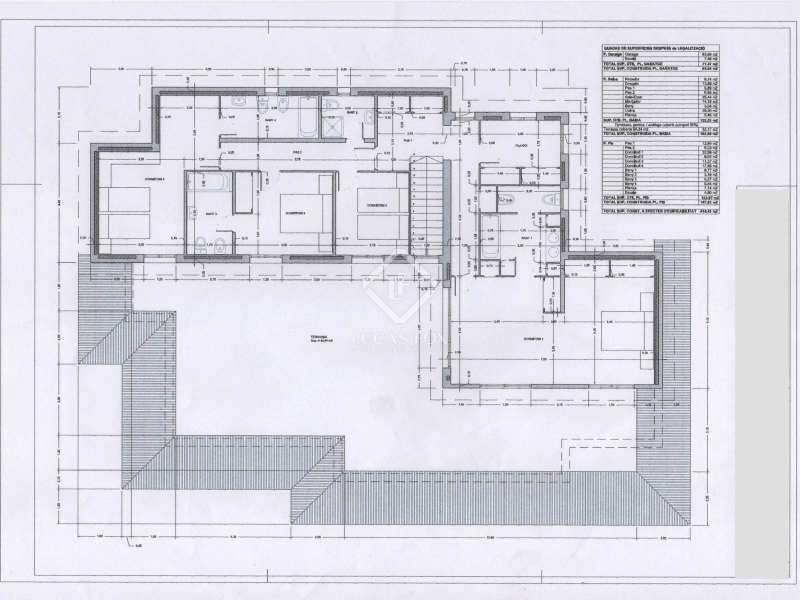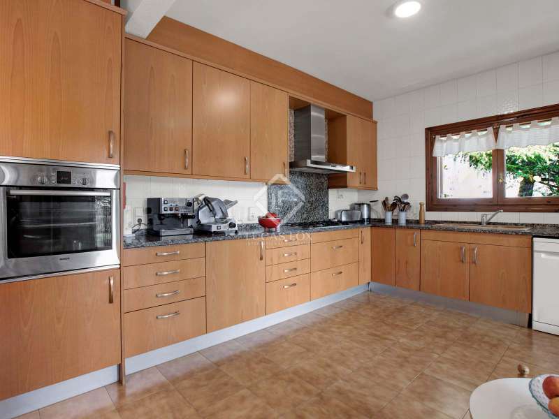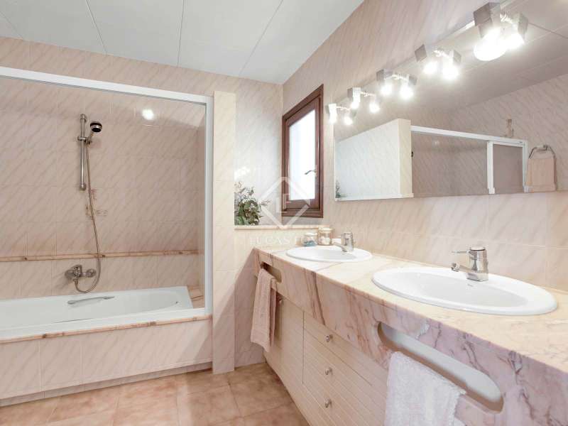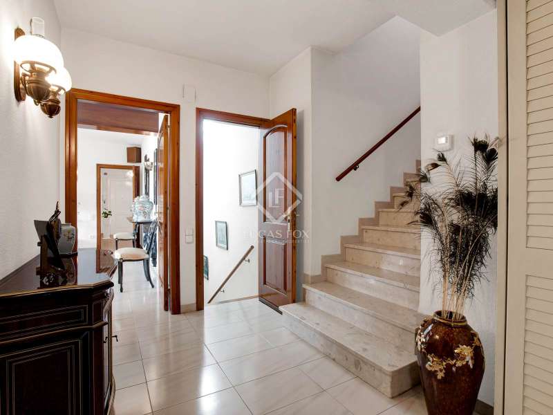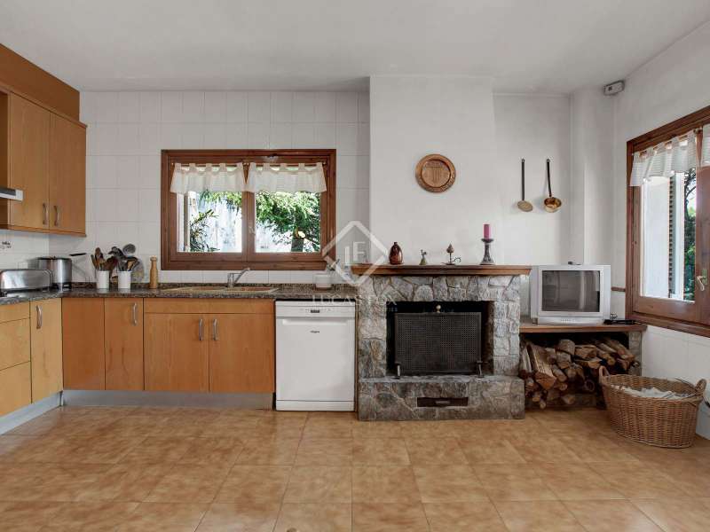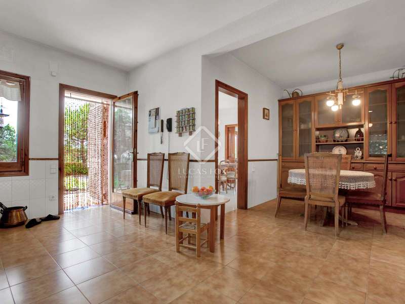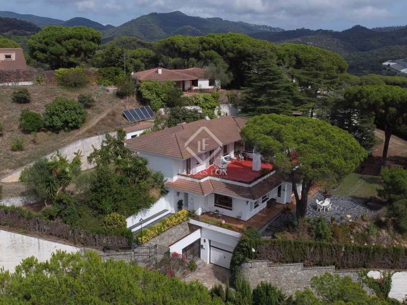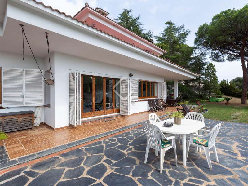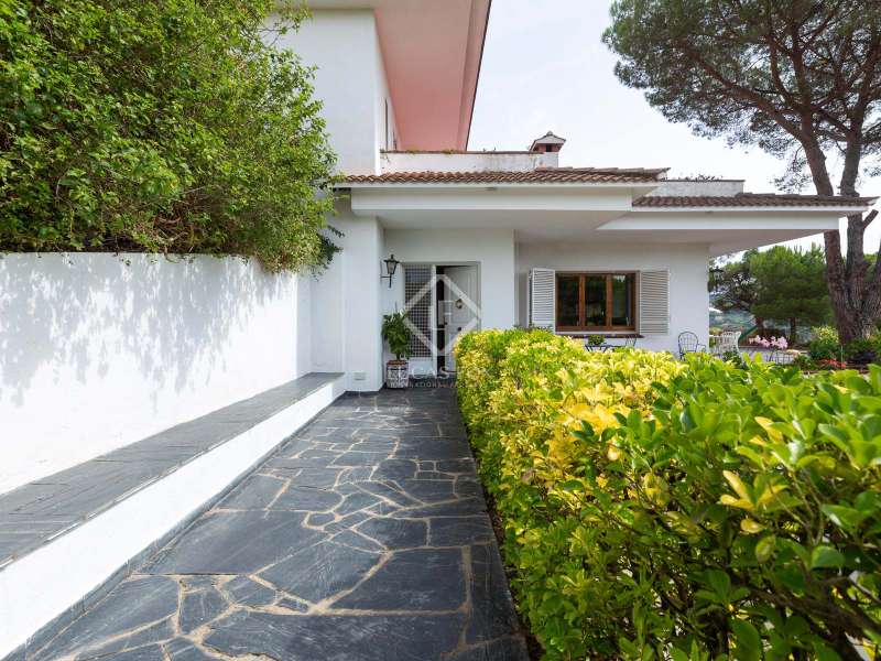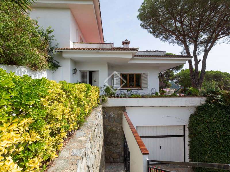 Spanish-style house surrounded by gardens a few metres from the centre of the town of Sant Cebrià de Vallalta. The house enjoys the advantage of being in an elevated area of the town, from where you can contemplate the church bell tower and, just behind it, the Mediterranean Sea. We find a 363 m² house on two floors, plus the garage on the ground floor, at street level, on a 2,400 m² landscaped plot. The current layout of the house has a bright living room, a formal dining room, a spacious kitchen with a fireplace, a guest toilet and an office. On the upper floor, there are four bedrooms, three of them with private bathrooms, an additional complete bathroom and a huge solarium with views of the mountains and the sea. From the second floor we have access to the back garden of the house. The whole house has underfloor heating, solar panels, the production of sanitary hot water and oil-fired heating. The house has a covered garage for 3 cars, as well as additional space for storage or tool room. Finally, the house benefits from having two plots of 600 m² each, which allow the possibility of building two single-family houses and which can be purchased in addition to the advertised sale price. The value of each plot is € 130,000. The total area of the land is 3,600 m². Please contact us for more information.