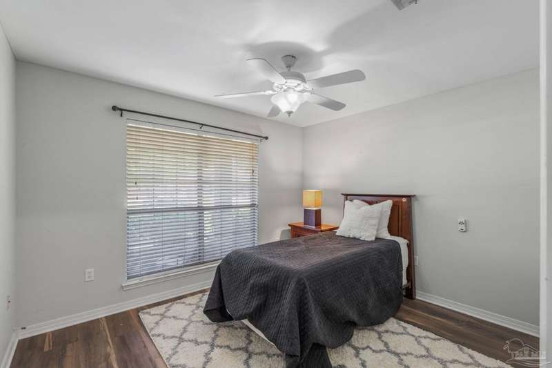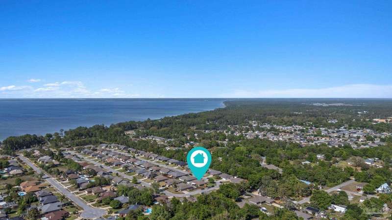 Welcome to your Bay Side retreat in the heart of Santa Rosa County! This 4 bedroom, 2 bath home sits on a corner lot in a tucked away, private community, just half a mile from the Bay. As you step inside, you're greeted by a bright living area with smooth vaulted ceilings overhead. New luxury vinyl plank flooring flows throughout, complemented by fresh paint, recessed lighting, and updated lighting fixtures in each room. The kitchen offers generous granite countertop space and an open layout, perfect for both everyday meals and entertaining friends. Four spacious bedrooms provide plenty of room for family, guests, or a home office. Outside, a widened driveway allows for additional parking, making room for extra vehicles or a golf cart. The sizable yard features a sprinkler system for easy lawn maintenance, and an 8x16 workshop/shed-complete with power, providing versatile space for hobbies or storage. Perhaps best of all, this home is within walking distance to the Bay and it's wonderful paved multi-use path that connects Gulf Breeze and Navarre. Discover the perfect blend of convenience, comfort and coastal charm-schedule your showing today!
