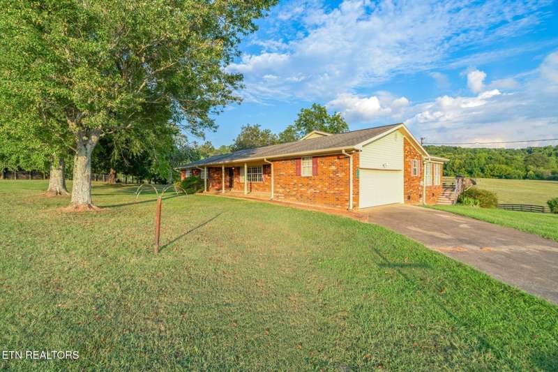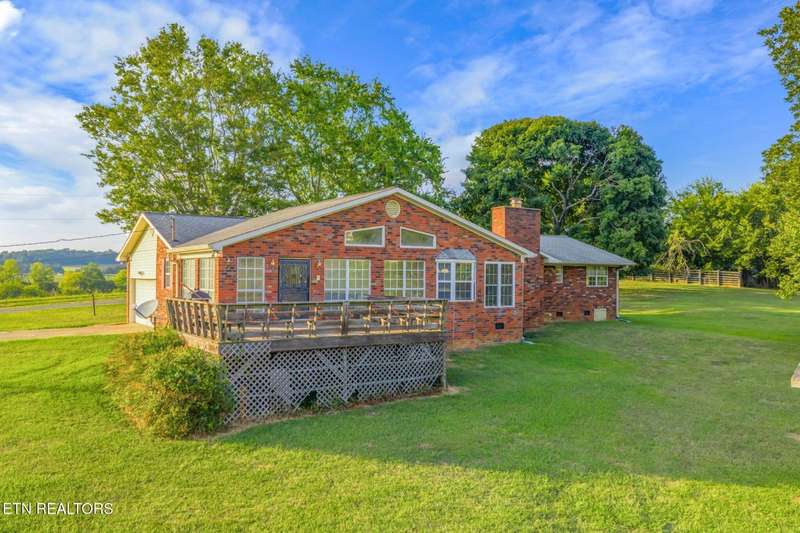 Welcome to your own slice of country paradise. This well-built brick ranch-style home sits on a scenic 2.43-acre lot surrounded by open pastures and peaceful views, where you can often spot deer and other grazing wildlife. Located just a short drive from both Knoxville and Chattanooga, this property offers the perfect balance of rural tranquility and everyday convenience, with shopping, restaurants, and amenities only minutes away.Inside, the home features spacious, light-filled rooms with original hardwood floors and custom touches throughout. The tongue and groove ceilings add a touch of rustic charm, and the layout provides a comfortable flow from room to room. While the interior is dated, it has been lovingly maintained and presents a wonderful opportunity for updates and customization. Whether you choose to embrace the retro character or modernize to your taste, this home offers solid bones and timeless appeal.The kitchen includes tiled surfaces and a classic backsplash with ample cabinetry, while the large bedrooms provide generous space???including a walk-in closet in the primary suite. Throughout the home, you'll find plenty of potential to make it your own, whether you're looking for a weekend retreat, investment property, or forever home.Outside, enjoy the wide-open space of the gently rolling acreage, ideal for a garden, a few animals, or simply relaxing in nature. The friendly neighborhood offers the quiet of the countryside with just the right touch of community.Don't miss this rare opportunity to own a charming country rancher with room to grow and make your mark. Call today to schedule your private tour and experience the peace and potential this property has to offer.