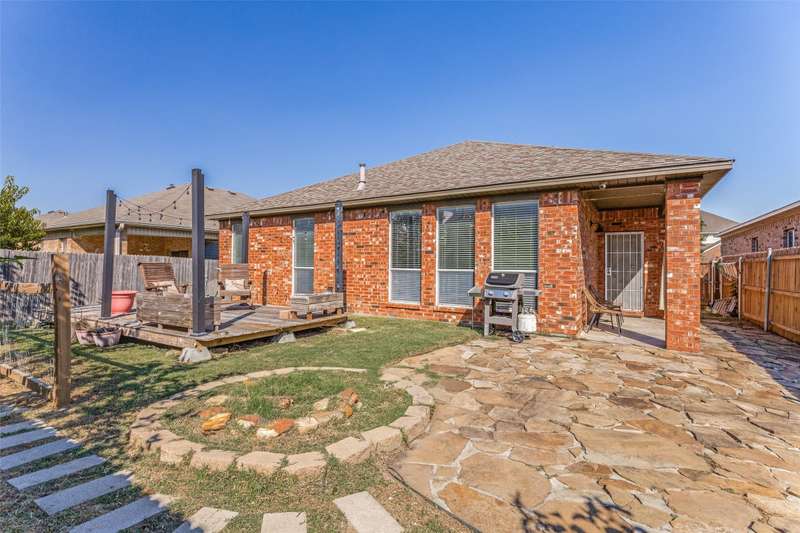 Move right into this beautiful 3 bedroom 2 bath home in the desirable McPherson Ranch! On top of a 2021 Roof, a 2022 Water Heater and a 2025 HVAC system, this home has MANY recent updates along with a lot of natural light, an open floor plan and of course gorgeous engineered hardwood floors! The split-bedroom layout ensures a private primary suite, which boasts double sinks, a luxurious garden tub, a separate shower, and an expansive walk-in closet. The large Kitchen is perfect for the chef in your home with a gas range, granite counters, Knotty Alder cabinets, island, large pantry, and plenty of cabinet space! A charming backyard ready for you to make your own includes a covered patio, a flagstone patio, deck and a fenced in area to start your own garden. Walking distance to the park and trails and enjoy the community pool and playground. Located within Northwest ISD, with easy access to shopping, restaurants and quick access to highways, its a location that meets all the needs!