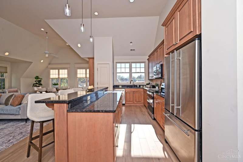 Beautiful top floor end unit in Jordan Park. Very quiet building with recently updated common areas - carpets, and decor - impeccably maintained! This home has vaulted ceilings, open great room/kitchen area, and a quiet and private balcony on the side of the building closest to the square. 2245 sq ft, all new white oak hardwood floors throughout. Easy living in ideal condo location in Mariemont. Walk to everything - Graeters ice cream, movie theater, Starbucks, Mariemont Inn, restaurants and unique small businesses. Idyllic village lifestyle, while providing quick commute to downtown and Hyde Park, and north to Madeira and Indian Hill. Don't miss the opportunity to make this home!