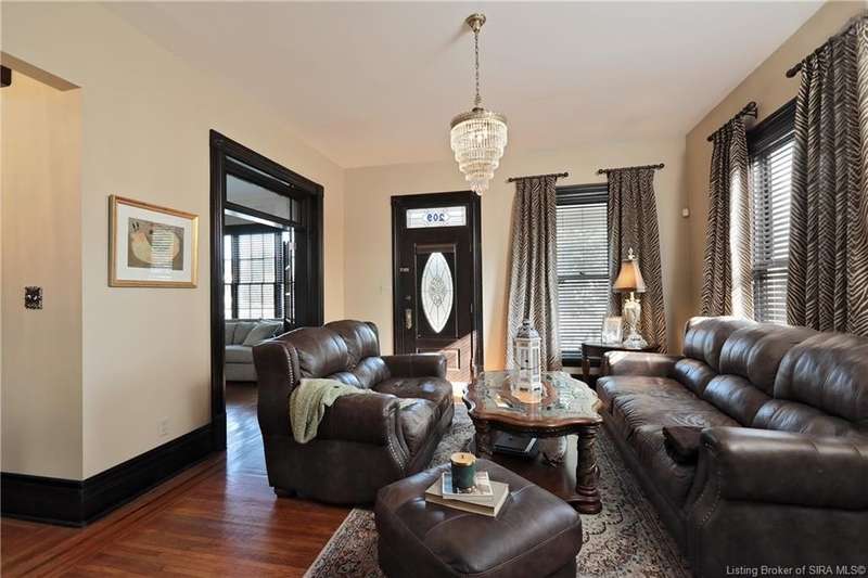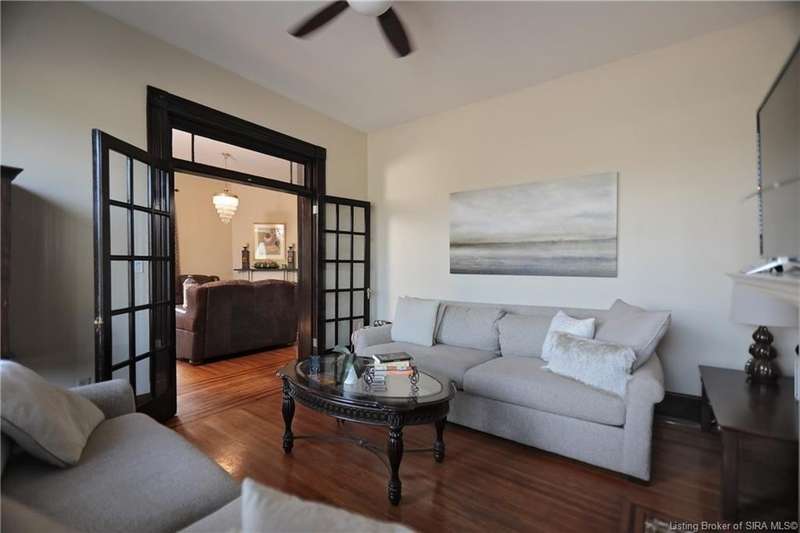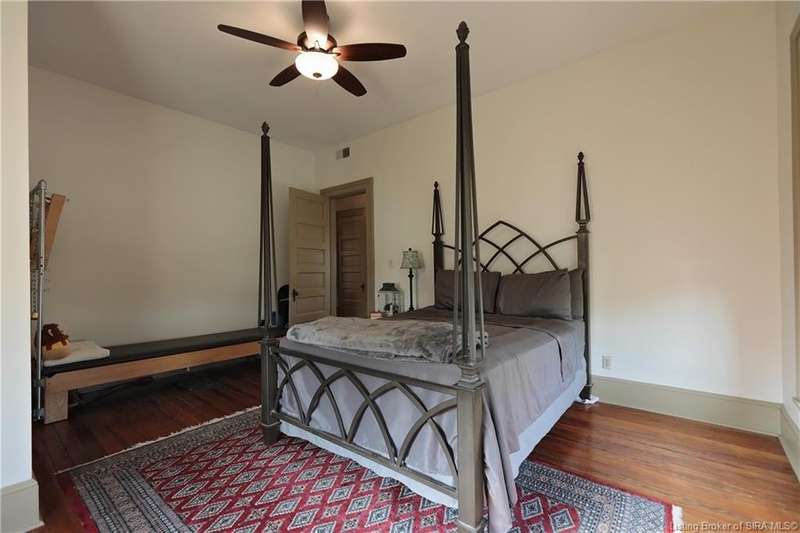 A true Victorian gem with brilliant location is now available. The Big Four Bridge is your neighbor...and all the restaurants and happenings of downtown Jeff are at your beck and call. PLUS, the privacy fenced back yard provides a shady, peaceful retreat! The CARRIAGE HOUSE style, 2 car garage with finishable upstairs sits on the quiet alley and provides extra off-street parking. The paint, repointed chimney, sealed and coated box gutters, ceiling fans, lights, furnace (historically appropriate storms for several windows coming soon) ...are a few of the many renovations made over the years that have been careful to maintain the historical charm. Ask your realtor for the full list. Further, we think you'll appreciate the beautiful woodwork, decorative fireplaces, tall ceilings, original hardwood floors, decks, & porches.