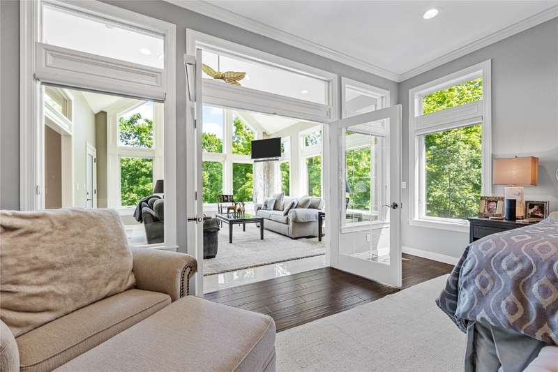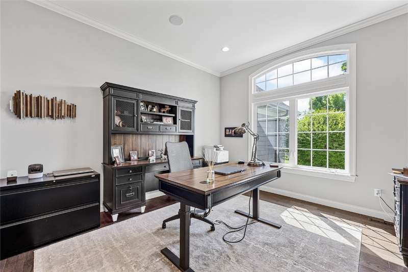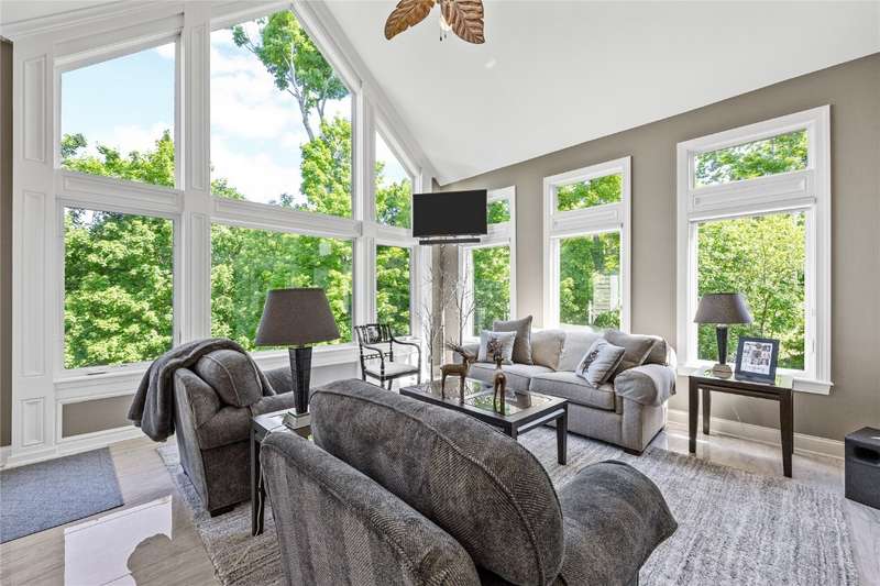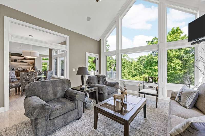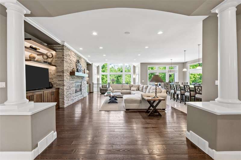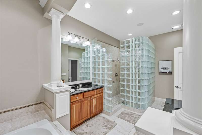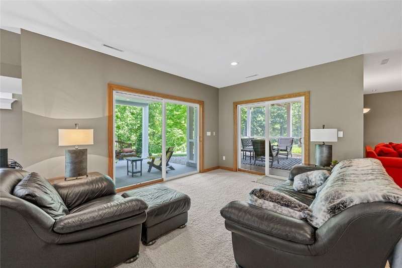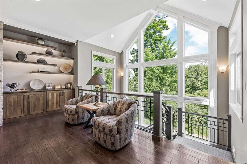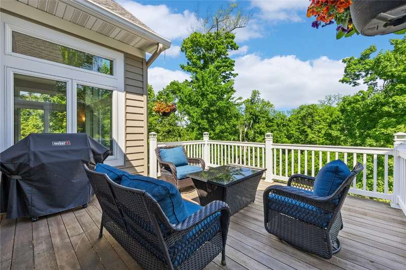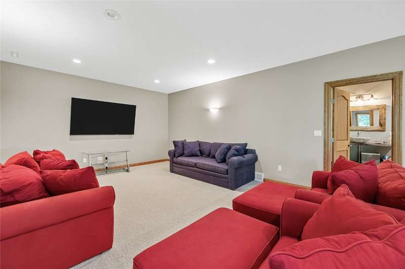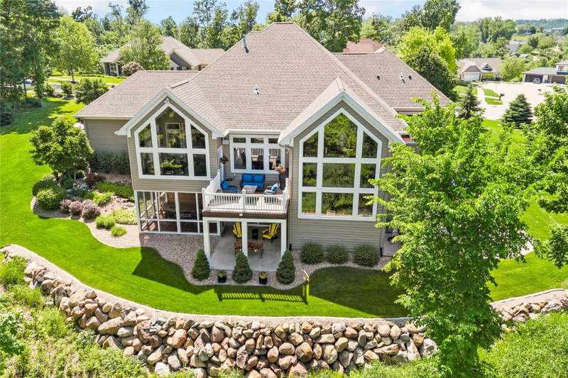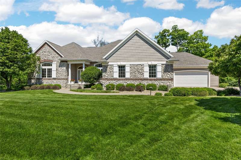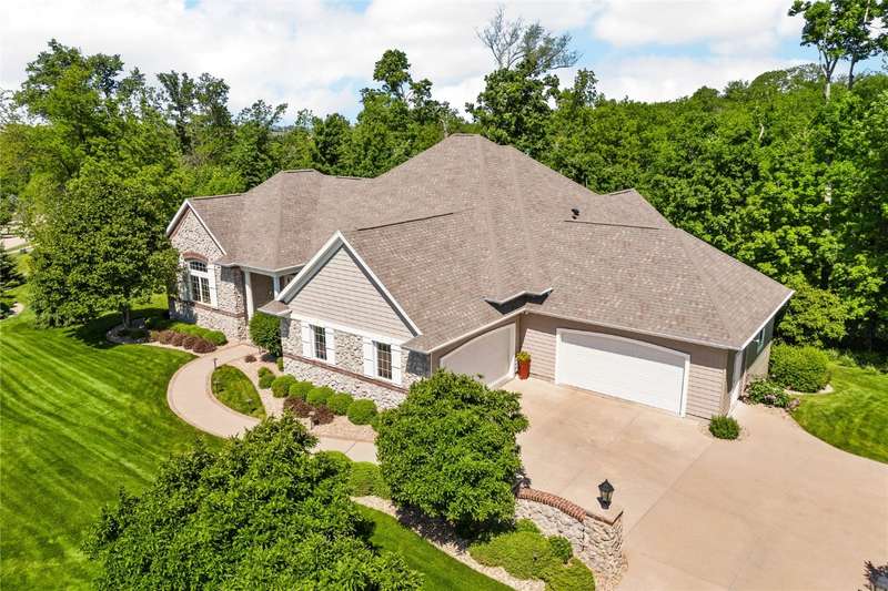 This one owner property is located in a neighborhood of all custom homes, conveniently located with easy access to Edgewood Road, Hwy 100 and I-380. The house is situated to take advantage of the mature timber and open view of the valley. Super private 1 acre lot with little or no view of the neighboring homes. The landscaping was designed by one of the area's highly regarded landscapers. Their design encompasses foundation plantings, islands of plantings, berms and landscape lighting throughout the entire area. It was designed to provide colors / greenery throughout the entire year. One of the primary features is an award-winning pond-less waterfall surrounded with plantings. This feature is located adjacent to the screened in porch and primary bedroom above to take advantage of the visibility and calming sound and lighting. The side yards are spacious to allow for play areas & entertainment venues including a potential pool site. With an open-air deck, screened porch, covered patio and an open-air large patio the opportunities are numerous for large and small gatherings. The interior of this home was designed with an open floor plan focusing on the views afforded by numerous large windows. The architect used natural light and high ceilings to “bring the outside in”. Constructed with an abundance of custom features orchestrated by the use of interior and exterior transom windows, trapezoid and rectangle windows, detailed wood moldings and trim and intricate window casings. With approximately 3300 square feet finished on the main level, the home is unique. The spacious front entryway and foyer afford a great view through the great room and adjourning atrium stairway lined with glass. The 29’ great room features a fireplace with a floor to ceiling stone wall, with flanking custom-built walnut cabinets and floating shelves with undermount lighting. Dark oak authentic hardwood flooring, complements the cabinetry and mantle. The open kitchen is adjacent to the dining area. It features a large, custom constructed walnut island, a significant amount of cabinetry, granite tops and GE Café appliances, including a 6-burner dual source cooktop and oven. The cabinetry provides for glass door accents, planning desk, above and below cabinet lighting and strip lighting behind the glass fronts. The flooring in the kitchen dining area and adjacent sitting / sun room is heated. The primary bedroom suite provides a wall of glass, access to the sitting/sunroom, a large locker room style shower with built-in shelving and seat, and glass block to allow for additional light. The walk-in closet offers shelving and drawer towers and is lined with ample hanging space. The spare bedrooms suites have a jack & jill bath with an interior door for privacy. They are located away from primary suite making it ideal for the full-time residents as well as guests. Both bedrooms are large enough to accommodate king size beds, accompanying case goods and contain large lit closets. The sunroom / sitting room features three sides of glass and access to the deck. This room makes a quaint and quiet area, ideal to enjoy the view of mother nature and relax. The lower finished area is approximately 2700 square feet. A possibility for a 4th bedroom exists. It provides two sides of walkout to access the screened in porch and both patios. It is designed with a large rec room to accommodate various uses and configuration, theater area, game area, etc. There is an adjacent ¾ bath completely remodeled and enlarged with high quality tiled floors, tiled walk-in shower, top of the line shower fixtures, a wood, live edge vanity top with accompanying open shelf below, a vessel sink and a large linen closet. This level has a spacious exercise area that could be converted or added to various uses, i.e., home office, hobby area, playroom, game room or bar area (the space is roughed in for plumbing) or a theater room. In all, this level has three sets of sliding glass doors and continues with the theme of ample natural light. 9 foot ceilings embellish the openess. There is a large storage/mechanical room with substantial shelving and a dog wash station. The attached four stall garage is positioned to minimize the view of an abundance of garage doors. It offers hot and cold water and an exterior pedestrian door. Seller is a licensed real estate broker in the State of Iowa