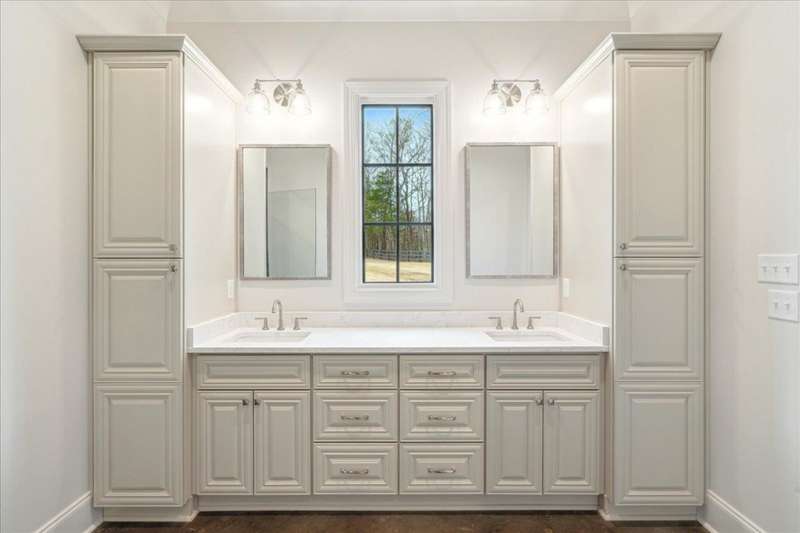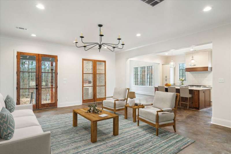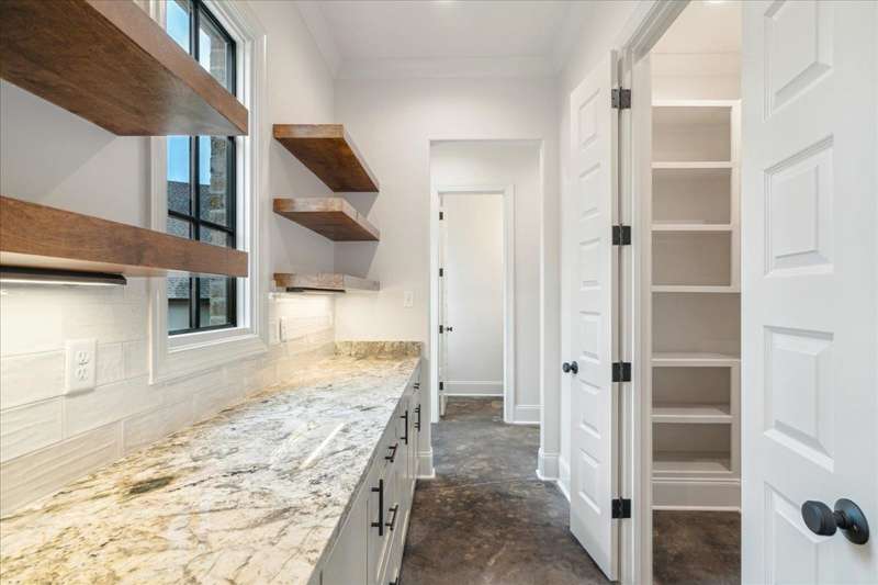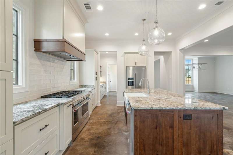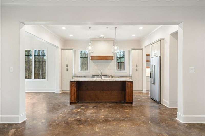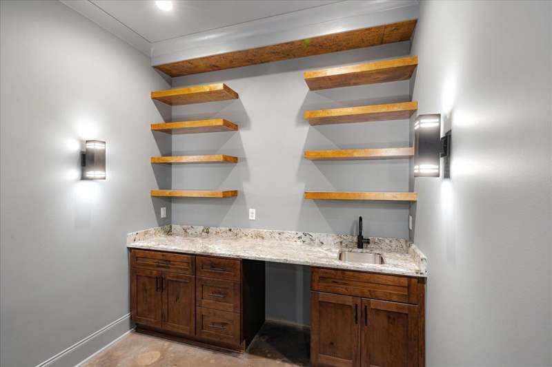 This beautiful, new, custom-built home, with lots of character is sitting on a 1/2 acre lot. Featuring 4 bedrooms and 4 1/2 baths & all bedrooms have en-suite bathrooms. Huge formal dining area opens to a 20X19 family room which leads to an incredible 27x15 covered patio that overlooks a quiet nature area. Don't miss the secret door to a private 12X9 wet-bar with the prohibition-period speakeasy in mind. Kitchen w/ huge island, custom cabinets & 6 burner gas cooking, 13X13 breakfast room, butler's pantry, and mud room. The master bedroom on the back of home has a vaulted ceiling, wall sconces, custom closets with built-ins, and a luxury master bath with walk-in wet area including a soaking tub inside a double shower. The home was designed by locally renowned architect David Anderson with simple elegance, natural light, and functionality in mind. The stained concrete floors make living here carefree but the high-end finishes make the home as formal as you want to be.