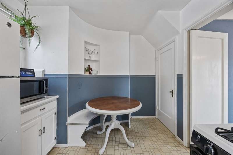 Besides style and charm, this 972 sq ft traditional home offers designer ceilings, hardwood flooring, wood burning fireplace, built in shelves and niches. Formal and casual living spaces including a drop zone conveniently located off the kitchen, attractive curb appeal with a front porch with iron railing, second floor dormers, 492' sq ft garage with built in storage and updated vinyl siding, deck with bench seating and stairs to deep rear yard. Updates include 2022 a/c approximate, 2021 water heater approximate. One year home warranty, pest control warranty included. Average monthly gas: $58, Average monthly electric: $127.