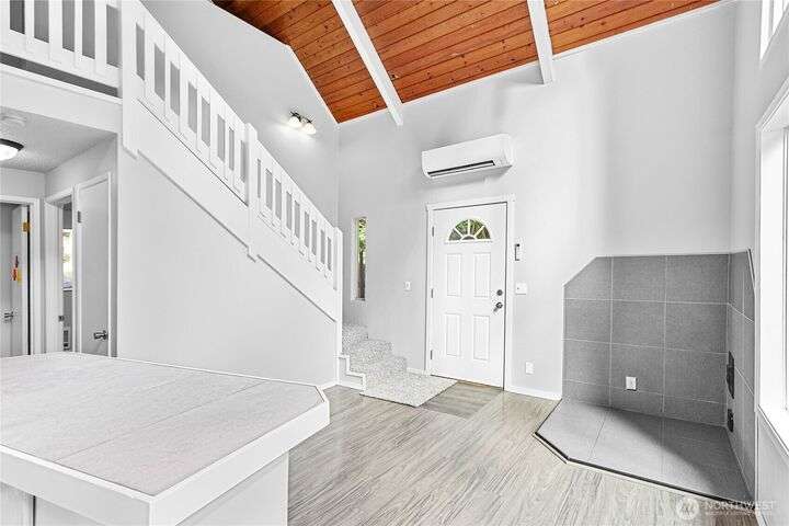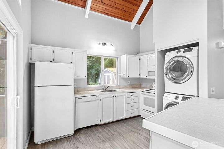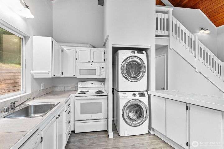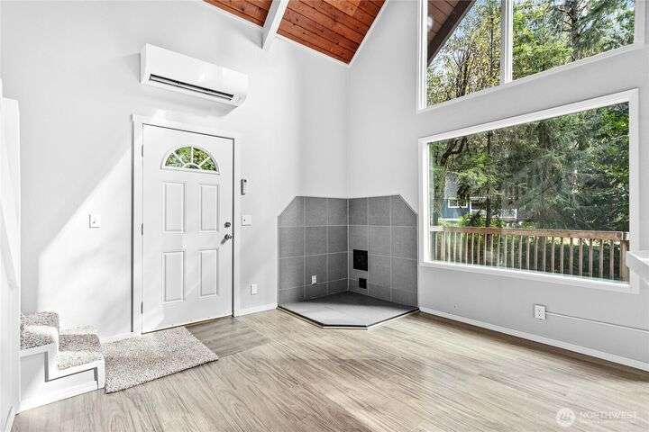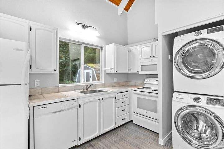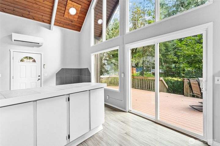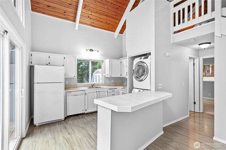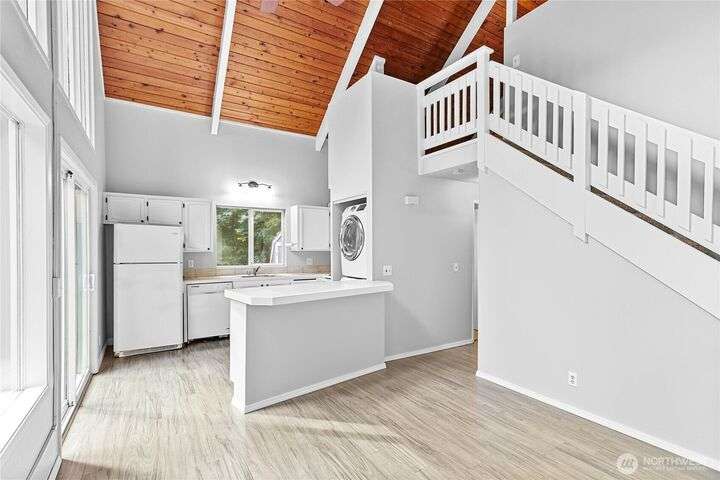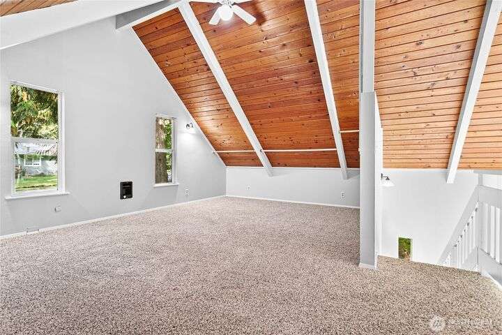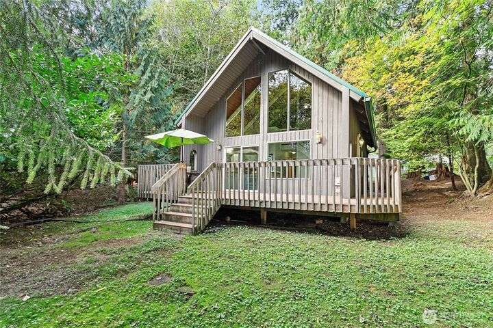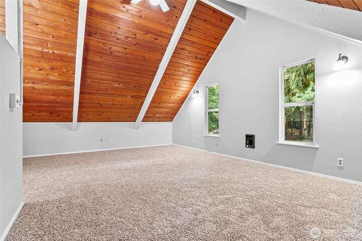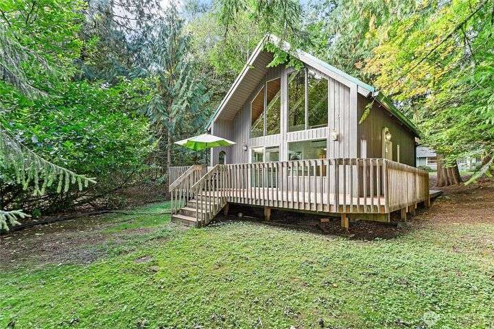 Light & bright home with tongue & groove pine vaulted ceilings and a spacious loft for additional bedroom or living space. Brand new carpet and paint.This is cozy cabin meets modern comfort: mini split for heat & A/C, lots of natural light, a private feeling lot and a dreamy rear deck with sounds of the creek running along the property line. Convenient location in Sudden Valley just a few turns of Lake Louise Rd. A great value - see it in person before it’s gone!