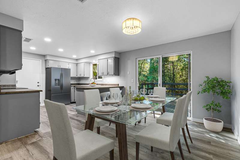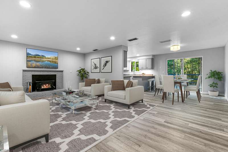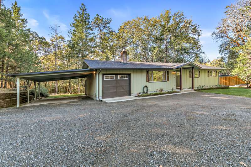 Seeking a cozy getaway in the woods? If so, this is the one for you! Remodeled inside and out, this single level charmer features 3 bedrooms, 2 full bathrooms, 1248 sq ft, open floor plan, new kitchen, new appliances, new bathrooms, new HVAC system, new roof, new gutters, new lighting, new interior/exterior paint, RV parking, single car garage (whole house fan installed within garage), attached carport, spacious deck, underground concrete 2000 gallon holding tank, new privacy fencing installed between neighbors, & much more! Large 0.93 acre lot is landscaped front and back w/ in ground sprinkler systems installed. Close proximity to both Merlin and Grants Pass as well! Enter into your living room, light a fire in your woodstove, and enjoy the ambiance a freshly remodeled home has to offer. Rare opportunity to find a property at this price point with so much to offer, so contact your agent today for a personal tour, before it's too late!