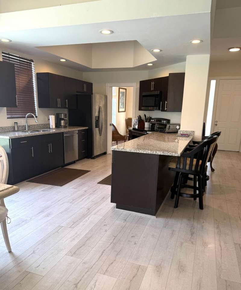 Located in Riverwalk -A private, resort-style community.3BR/3BA Oakmont Model offers a Meticulously maintained & beautifully updated home. Granite countertops, stainless appliances. Updated bathrooms with Roman tub & separate shower. Accordion shutters for peace of mind. Private pool with oversized screened lanai overlooking a serene lake. Step outside and enjoy your very own backyard retreat while taking in the water views. Living in Riverwalk means more than just a beautiful home. You have access to world class amenities. 3 heated pools, 8 tennis courts, pickleball, bocce ball, Fitness center, 3-mile biking/walking trail, Playground, On-site Cafe & restaurant, Hair salon, card room & library. Riverwalk offers the perfect balance of active living & tranquil relaxation!