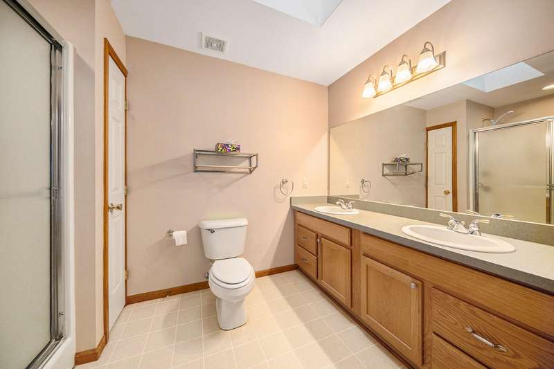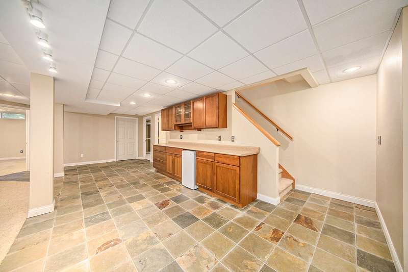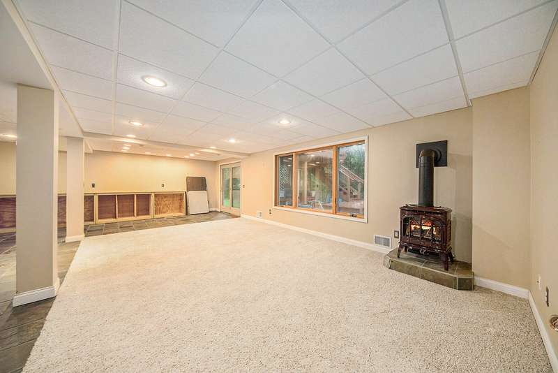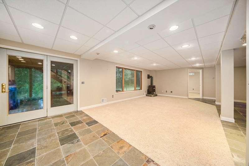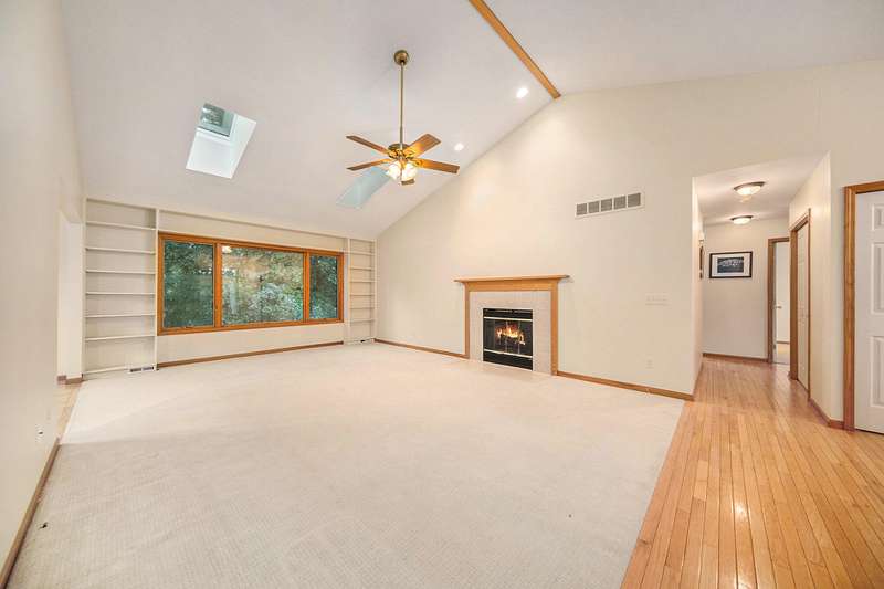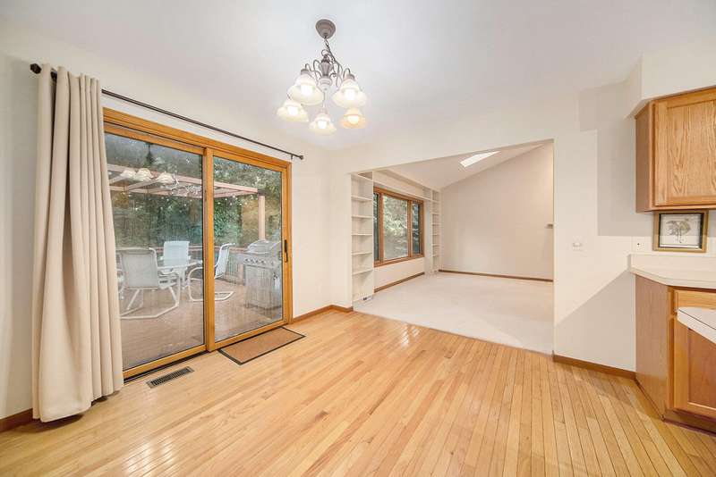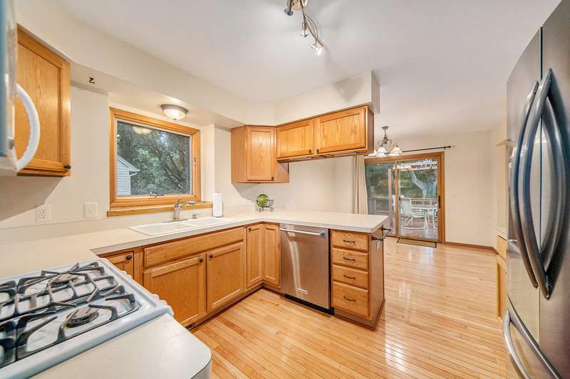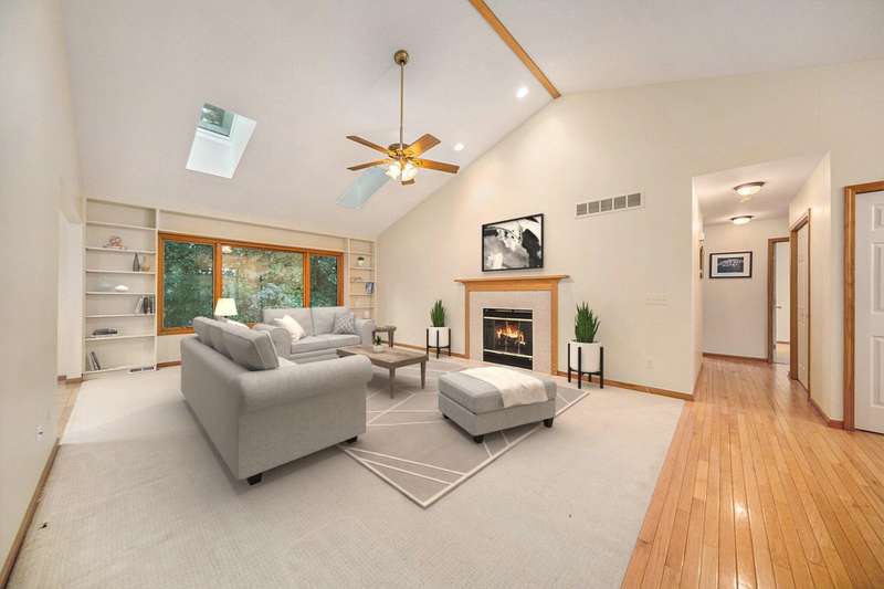 Move into this 5 bedroom, 3 bath ranch in Wildwood located on a quiet cul de sac backing to a wooded-natural area. The sun filled great room has a vaulted ceiling, skylights, gas fireplace, built-in bookshelves and a large picture window overlooking the backyard. Kitchen boasts a gas stove, new ss refrigerator, pantry, snack bar, dining area and a sliding door to the deck. Primary suite has an amazing view, walk-in closet and bathroom. There are 2 additional bedrooms, full bath and laundry on the 1st floor. The walkout lower level has an open flex space with a slate floor, wet bar, 2 bedrooms, full bath and storage. There is a lg patio that is prepped for a hot tub along with stairs leading to the upper deck. The backyard is filled with mature trees, lush landscaping, birds and nature.