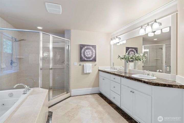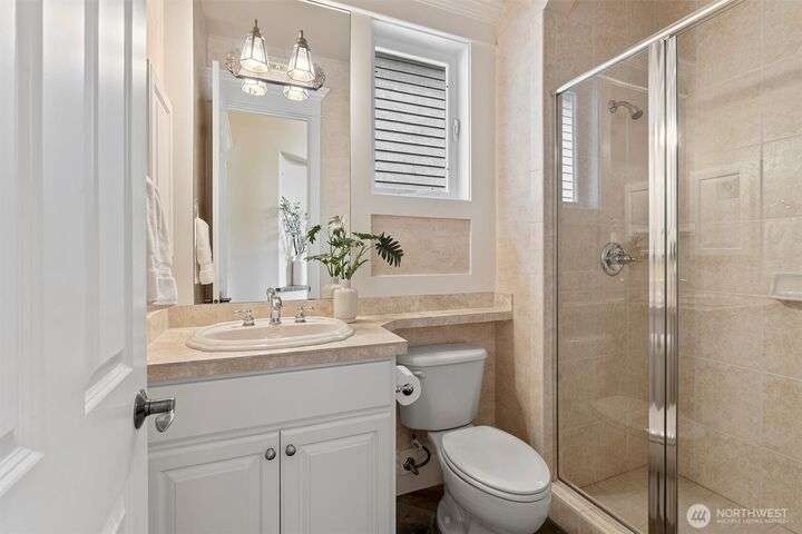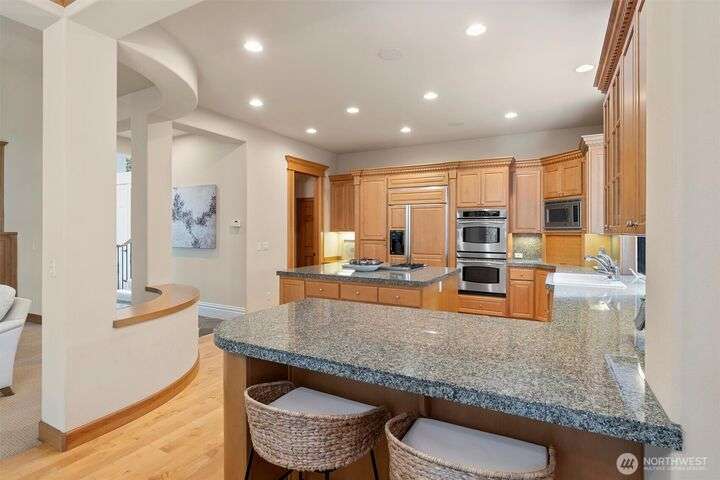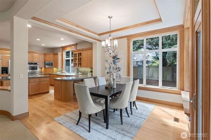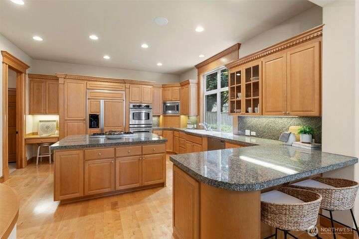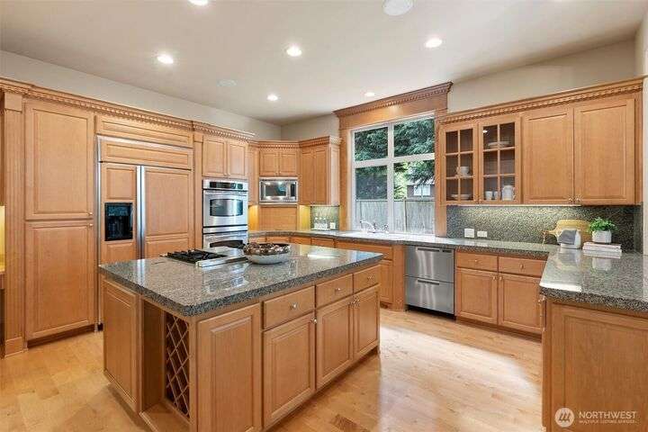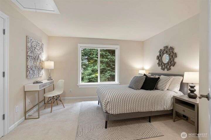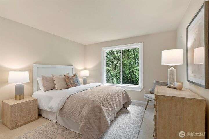 Own a quality Burnstead built home on the Southend of Mercer Island. Tucked away on a private lane, offering a spacious & low-maintenance yard. Hop, skip or jump to a premium grocery store, coffee shop, restaurants, parks & award-winning schools. Chef's kitchen including large island w/storage, premium appliances, high-end maple cabinetry & bar seating. Kitchen flows to dining area, living room, & patio for seamless daily living or entertaining. High ceilings provide an airy feel. Upstairs, find 3 generous bedrooms, incl impressive primary w/walk-in closet & spacious ensuite. A versatile 4th bedroom or office is on main w/adjacent 3/4 bath offering flexibility. A premier offering of location & home features. Home is easy to love & live in.