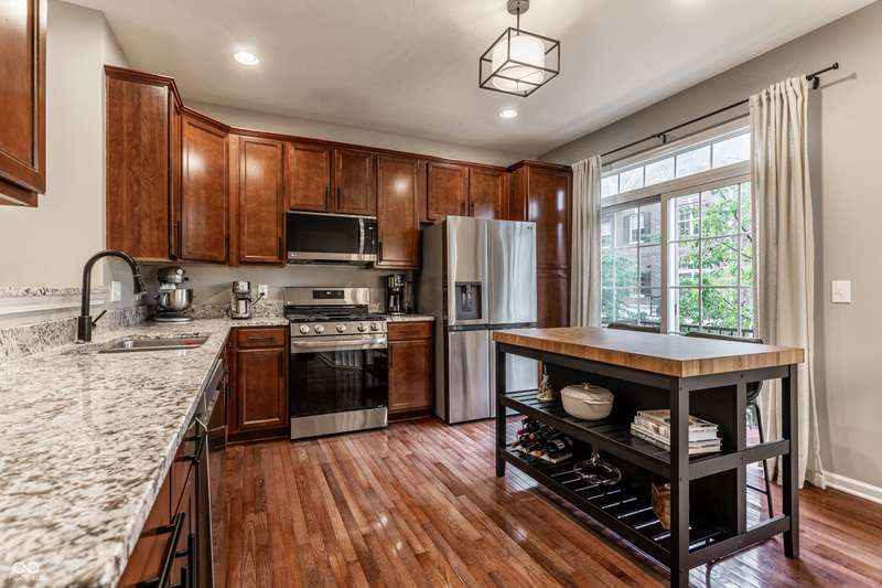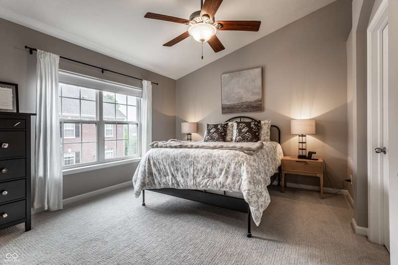 Special home - just move in! Office or den on first floor, great room, DR, kitchen on main level, and 3 full bedrooms +2 baths and laundry on upper floor. Neutral colors, luxury kitchen, great room w/cozy fireplace. Minutes from Monon Trail and downtown Carmel. Walk to restaurants, entertainment and shopping. Two balconies - front and back - to enjoy your morning coffee. Newer HVAC, appliances plus lots of storage. Welcome!