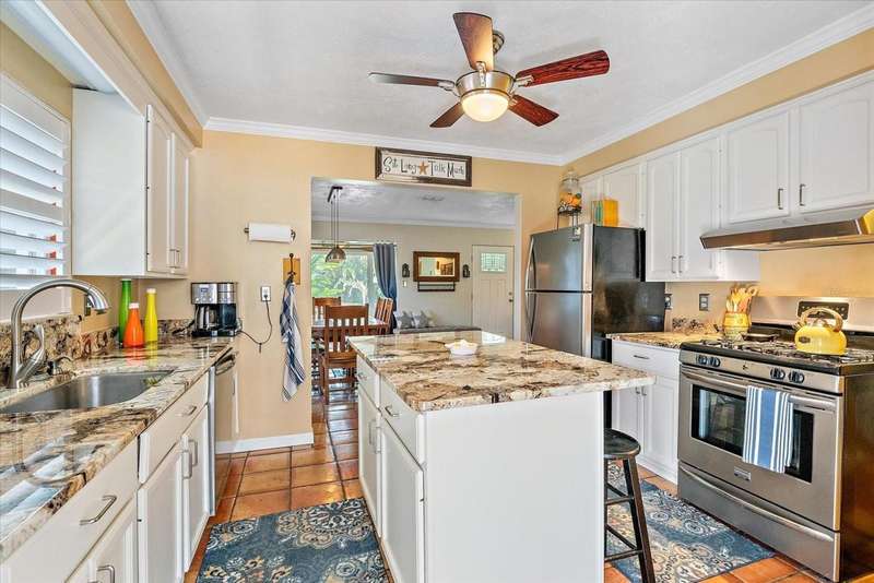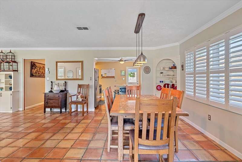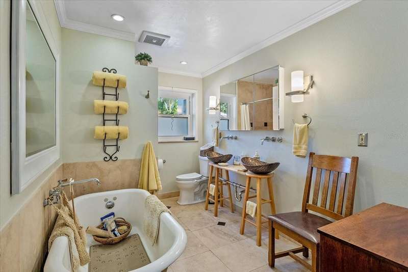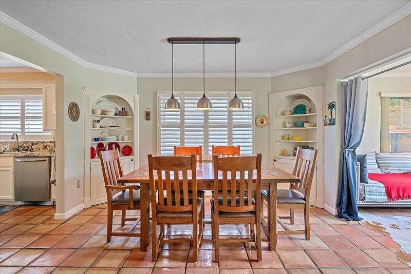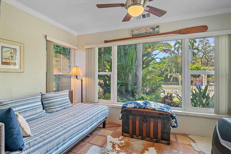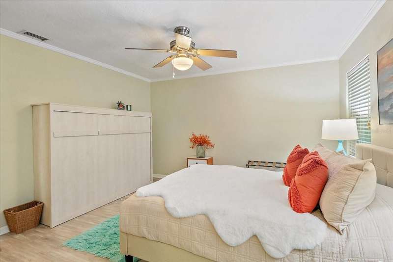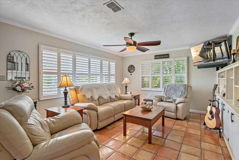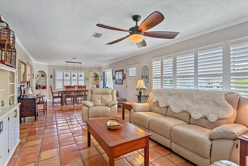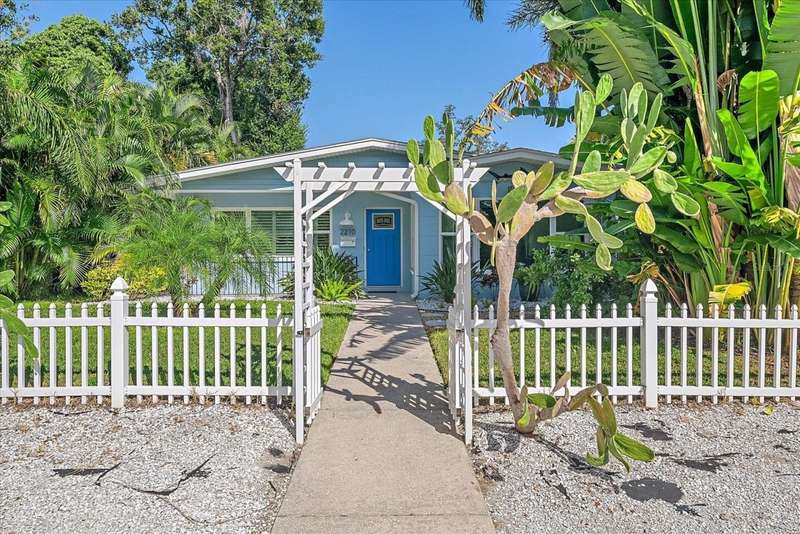 This Beautiful Cozy home is short stroll distance to downtown Old Main Street Farmer's Market and River Walk, few miles away from Bradenton's famous sandy beaches, G.T. Bray park with their famous pickleball courts and Warner's Bayou Boat Ramp. Well stablished neighborhood located in the Historic Wares Creek area. This charming home has a wonderful open space concept, Gorgeous Spanish tiles, plantation shutters, impact windows and doors, crown molding and den/office facing the lushed landscape. The kitchen has plenty of cabinet, granite countertops and stainless steel appliances. The bedrooms are generous in size with walk in closets and the bathroom is beautiful with a cast iron tub to relax, it also has a water filter/water softener system. The mature landscape is relaxing with a hot water tub. This property has a sprinkler system. It has a detached one car garage with a mini split air conditioner with endless possibilities and two-car car port with plenty of space for a RV or Boat. There are two designated parking spaces in the front of the house. This location is excellent and centrally located to shopping, dining and medical facilities. No HOA or CDD fees here!