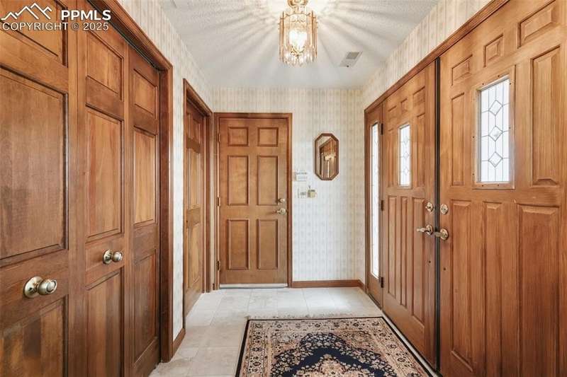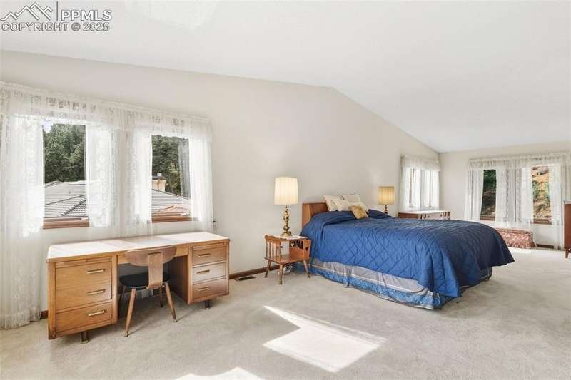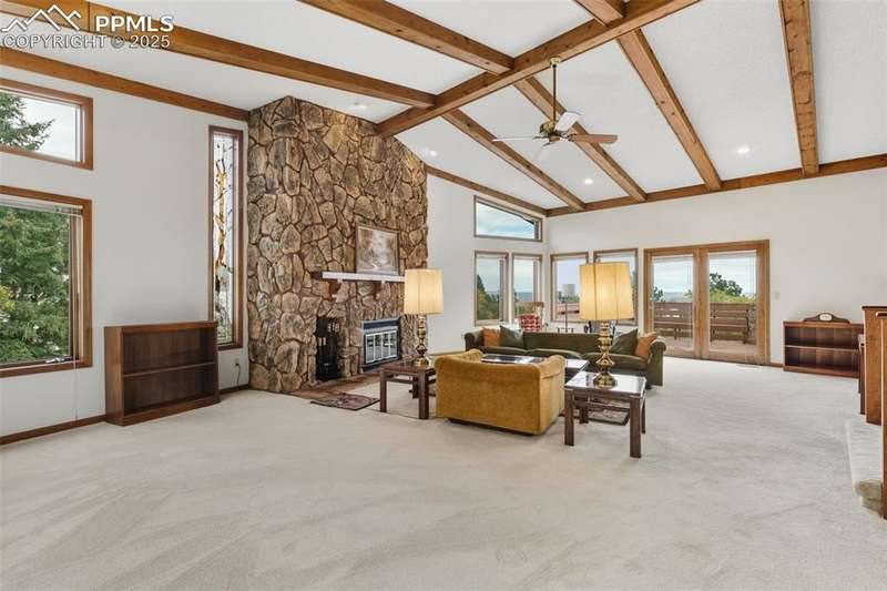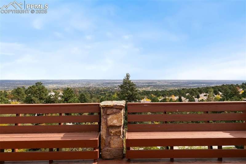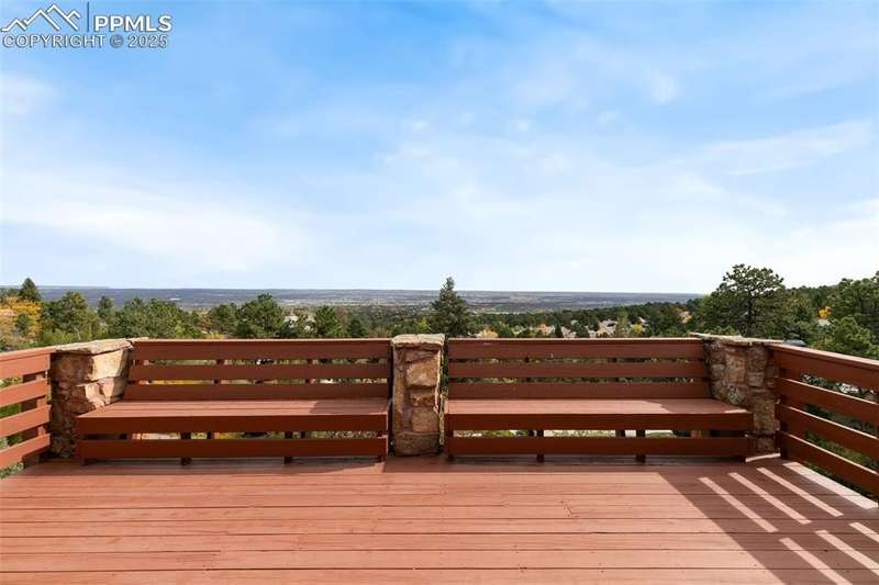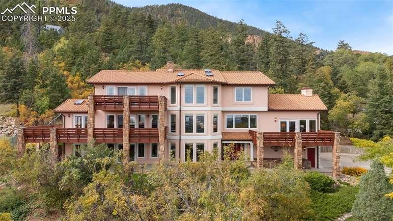 Designed by the Owner, who is an electrical engineer, and thoughtfully maintained since its construction in 1984, this custom home is a true original. Perfectly nestled on the slopes of Cheyenne Mountain, it offers a one-of-a-kind setting with breathtaking city views from nearly every window and from each of the 3 decks. The gentle chimes of the nearby Will Rogers Shrine provide a serene and ever-present reminder of this remarkable location. Upon entry, you’re greeted by an open staircase framed by elegant windows, leading to a spacious, light-filled main floor. Natural light pours into the home, accentuating its airy atmosphere and timeless neutral palette. With 4 natural stone fireplaces, it was designed with entertaining in mind, as the layout flows effortlessly from one inviting space to the next. A private, tucked-away office creates a tranquil retreat for work or quiet reflection, while the generously sized living areas offer endless possibilities for personal style and creative design. Upstairs, the primary suite is a peaceful haven, featuring a walkout to a large private upper deck overlooking the entire city. Each bedroom connects to an adjoining bath and offers abundant closet space. In 2019 a metal roof was installed, ensuring lasting peace of mind, underscoring the meticulous care given to every detail of this home. Ideally located just minutes from Stratton Open Space, the Cheyenne Mountain Zoo, and the world-renowned Broadmoor Hotel, this residence blends tranquility, elegance, and convenience in one exceptional property.