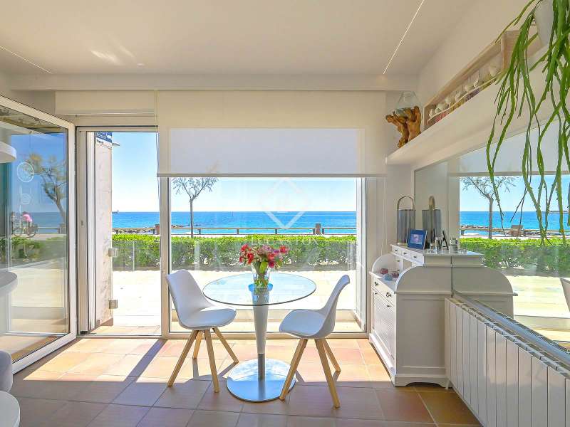 This exclusive 125 m² apartment (139 m² built) is located on the ground floor of a beachfront building in Sant Antoni de Calonge, one of the most privileged areas of the Costa Brava. The property stands out for its unbeatable location with direct access to the beach, its southerly aspect guaranteeing natural light throughout the day, and its active tourist license, ideal for both personal use and investment. The building has been carefully maintained and features a Mediterranean style that blends seamlessly with the coastal surroundings. The apartment was recently completely renovated with modern, high-quality finishes. Its separate entrance provides privacy and convenience. Inside, the property features a spacious living-dining room that opens onto a generous terrace with a chill-out area and unobstructed sea views. The kitchen is modern, fully equipped, and functionally designed. It features two double bedrooms, one with a private bathroom , and a large dressing room. It also offers a second full bathroom with a contemporary design. The property comes equipped with air conditioning, heating, built-in wardrobes , and double-glazed windows. It also includes a storage room, a private garage right next to the property , and a dedicated parking space in front of the door. In short, this is a unique property due to its location, layout, and condition. It's perfect for families looking for a second home by the sea, investors interested in vacation rentals, or people who value tranquility and comfort overlooking the Mediterranean.