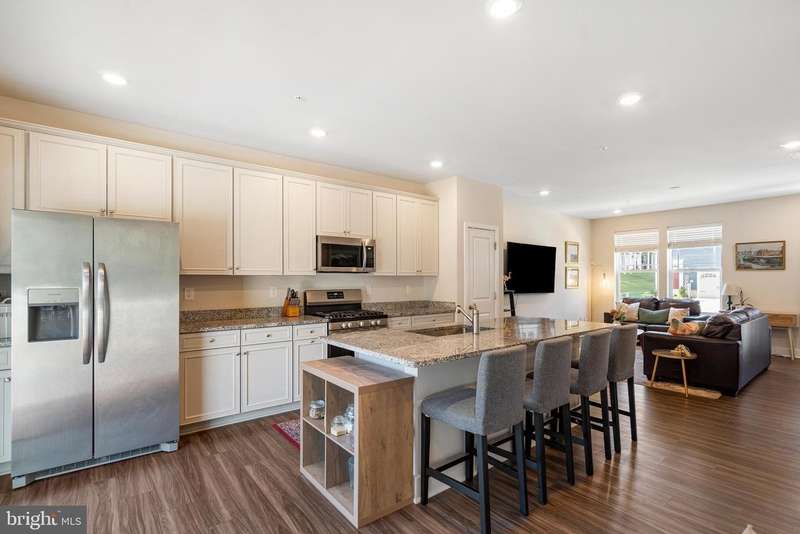 Like-new 4 bedroom, 3.5 bathroom townhome backing to a serene wooded area in the sought-after Patapsco Glen community! The inviting main level boasts 9 ft ceilings and luxury vinyl plank flooring throughout the open-concept layout, beginning with a light-filled family room with recessed lighting and powder room. Continue into the stunning eat-in kitchen featuring an 8-foot granite island with breakfast bar seating for five, 42-inch white cabinetry, stainless steel appliances, pantry, generous table space, and slider access to the composite deck overlooking peaceful wooded views. The upper level hosts three generously sized bedrooms with plush carpeting, including the primary suite with vaulted ceilings, walk-in closet, and private ensuite offering ceramic flooring and ceramic tile shower with built-in bench. A convenient laundry closet and full hall bathroom complete this level. The fully finished walkout lower level provides flexible living options with an office nook, 4th bedroom currently used as a home office, full bathroom, and a spacious rec room with direct access to the rear yard. Located in a newer Lennar-built community, residents of Patapsco Glen enjoy fantastic amenities including a community pool, playground, and more - all just minutes from Baltimore National Pike, 695, 95, dining, shopping, and everyday conveniences. Don't miss this move-in ready gem offering style, space, and a tranquil setting!