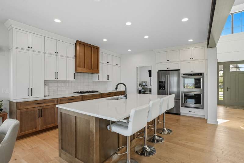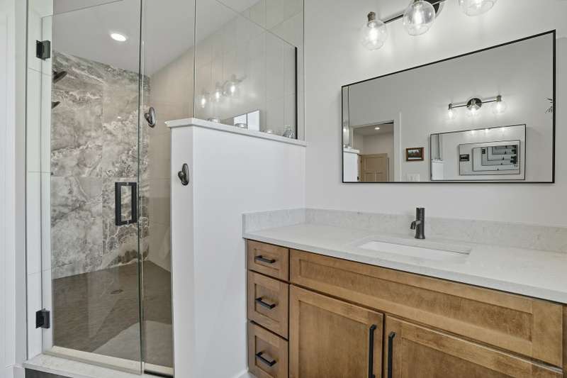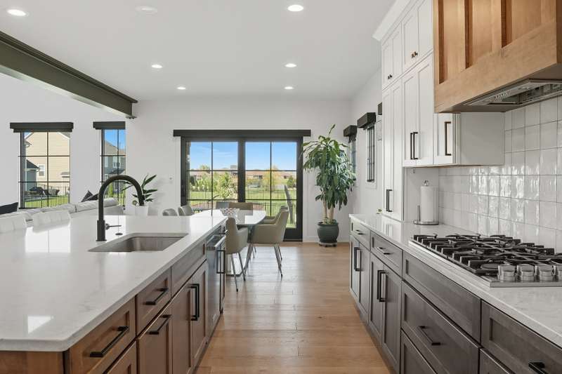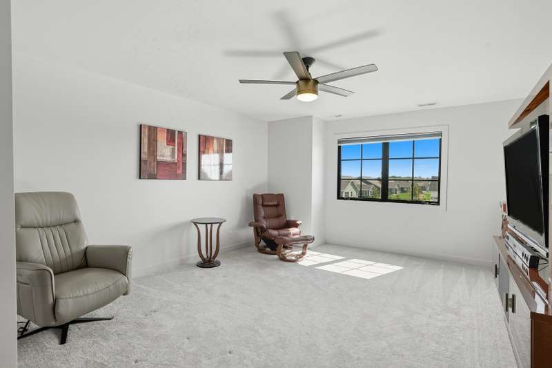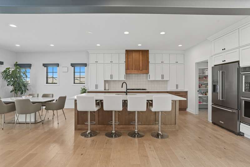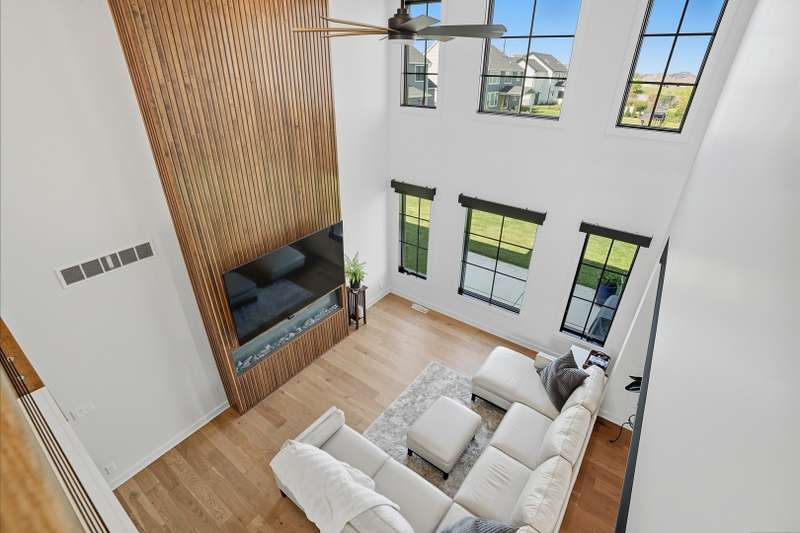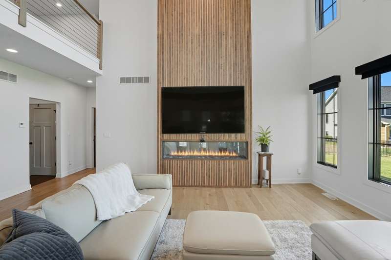 Why wait to build when you can move right into this nearly new showstopper of a home! Step through the foyer and be greeted by a striking modern staircase and custom accent wall. The heart of the home is the stunning 2-story great room, complete with a floor-to-ceiling fireplace, seamlessly flowing into the gourmet kitchen with an oversized island, stainless steel appliances, and a spacious walk-in pantry. The main-level primary suite offers a spa-like ensuite with an oversized shower and a custom walk-in closet. A laundry room, stylish half bath, and mudroom with custom designed bench complete the first floor. Upstairs, you'll find four generously sized bedrooms with walk-in closets, a versatile loft area, and a full bath. Step outside to the covered patio overlooking the large fenced-in yard-perfect for entertaining and relaxation. Additional highlights include a 3-car garage with epoxy floors, Aquasana whole-home water filtration, sump pump with WiFi battery backup, customized shades, casement windows, irrigation system, dual furnaces and AC units, and distinctive finishes throughout making this home truly one-of-a-kind!