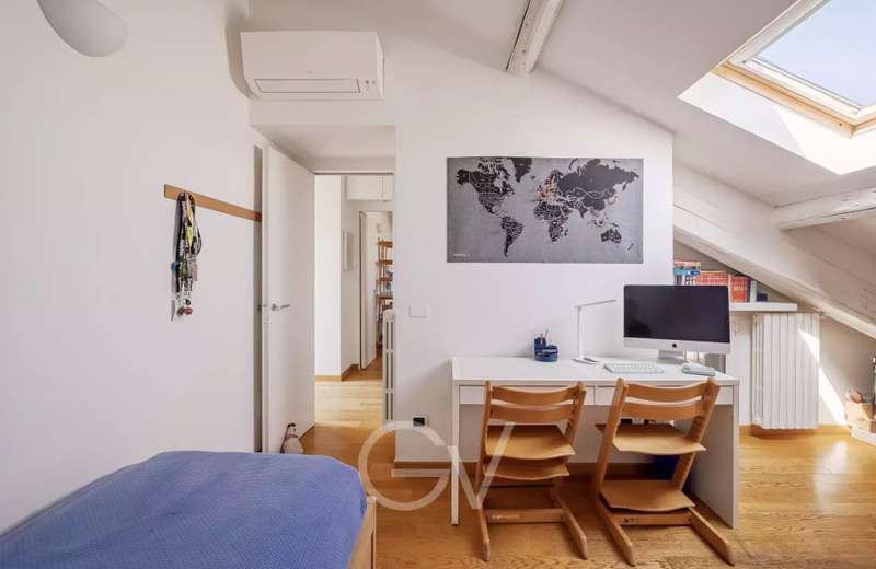 gv1357 - Via Pisacane - Sober elegance and functionality. The understated and essential Milanese elegance is well captured in this refined 204sqm apartment, spread over two levels on the fourth and top fifth floor, where the spaces have been reorganized with a contemporary and functional vision. The airy, open rooms are designed to maximize the flow of natural light and follow one another in a seamless layout that perfectly meets the needs of convivial living and family life. This is achieved through the apartment’s two levels and a meticulous study of the floor plan. The entrance welcomes discreetly and disengages into the fourth floor, which opens onto a spacious living area lit by double windows, featuring terrazzo flooring and subtle touches of color found only in the furnishings, next to it there is the elegant dining room, gracefully semi-visible, and in a natural flow, the delightful eat-in kitchen, which is delivered fully furnished. The private spaces on this floor include the master bedroom, overlooking the quiet inner courtyard, with its en-suite bathroom and a beautiful walk-in closet. To complete a guest bathroom with shower and a dedicated, separate laundry room. The connection to the upper floor is highlighted by a striking yet minimalist staircase in pietra serena, which ascends lightly to the fifth floor thanks to the glass balustrade elements and a playful, eye-catching porthole window. A shift in mood occurs upstairs, where a spacious attic area with generous ceiling height unfolds flooded with natural light and warmed by the rich tones of the parquet flooring. Here, three spacious and well-proportioned bedrooms are developed, served by a third bathroom with a tub and enhanced by a delightful, liveable terrace full of greenery overlooking the rooftops of Milan and by a second smaller terrace that provides additional light and ventilation. To complete, a large area used as storage and technical space, and a secondary entrance from the condominium access. The splendid Liberty stately building has half-day concierge service and a lift. The apartment has autonomous heating and an air conditioning implant newly constructed. A few steps from the Gardens of Via Palestro, this area is well inhabited and gives you the opportunity to know all the faces of the city, starting from the shopping and the antiques to the artistic and cosmopolitan with many flavours of restaurants and bistros. The subway M1 (Palestro and Porta Venezia station), the new subway blue M4 (Tricolore station) that links directly with the historical center and Linate airport, the railway link Porta Venezia, the several surface lines including trams 9,19,5 and 33 and the buses 54 and 61 are a few steps away. Energetic Class D – Ipe 154,47. € 1.550.000 - € 3.300,00 condo expenses. The choice of this property helps to support the mission of Theodora onlus. Photos, texts, floor plans, etc., are purely for indicative-illustrative purposes and do not constitute documents with contractual value and assumption. Giorgio Viganò Real Estate - 027636151 - www.giorgiovigano.com
