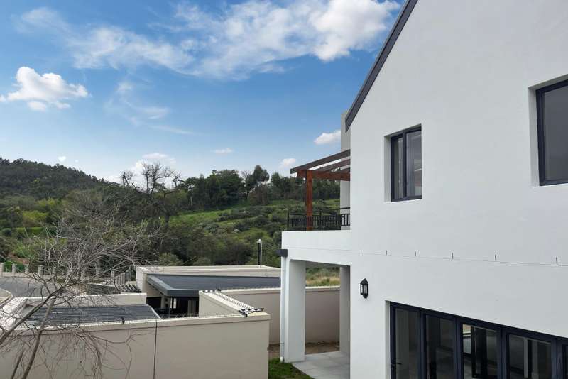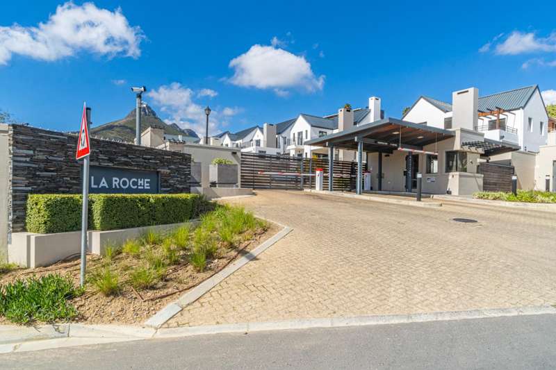 Conveniently situated at the main gate of La Roche Estate, this stunning entertainer?ÇÖs home offers the rare blend of tranquil country living with effortless modern style. Surrounded by the calm beauty of nature, it feels less like a house and more like a peaceful paradise where the indoors and outdoors flow together seamlessly. Available for immediate occupation, this home welcomes you into a spacious open-plan living area, framed by large stacking doors on three sides that draw in natural light and connect you to the lush outdoors. At the heart of the home is a charming country-style kitchen, featuring an island perfect for prepping meals as a family or sharing a glass of wine with friends. It?ÇÖs fully equipped with a free-standing gas hob and electric oven, while the adjoining scullery offers room for all your appliances and convenient access to the oversized double garage. The living area centers around a cozy fireplace?Çöthe ultimate winter luxury?Çöand flows into a covered braai area where good food and great company are guaranteed. Downstairs also includes a guest bathroom, adding an extra layer of convenience. Set on a generous corner plot, the property offers significantly more space than its neighbors. There's ample room to add a splash pool, an entertainment deck, or even a landscaped garden oasis?Çöjust in time for summer gatherings and festive season celebrations. Upstairs, a light-filled landing offers the ideal spot for a study nook or reading area. Two well-sized bedrooms share a spacious full bathroom; one boasts a private balcony overlooking the vineyards, while the other offers sweeping views of Botmaskop. The main bedroom is a showstopper: breathtaking vineyard views, a luxurious en-suite with double vanities, and more than enough wardrobe space with nine built-in cupboards. Waking up here may just become your favorite part of the day. Practical features haven?ÇÖt been overlooked?Çöthere?ÇÖs a linen cupboard upstairs, under-stair storage, and all the windows (except in the bathrooms) are fitted with roller or wooden blinds. The entire interior has been freshly painted and is move-in ready. La Roche?ÇÖs location is hard to beat?Çöclose to top schools like Paul Roos, Rhenish Girls, and Bloemhof, as well as Stellenbosch University and the historic town center. Fancy a Saturday morning drive to Franschhoek for breakfast? It?ÇÖs just a short trip away. And if you?ÇÖre into hiking, the surrounding trails and fynbos-covered hills will be your weekend haven. A peaceful stream winds through the estate, adding to the sense of calm that makes this such a special place to call home. All serious offers will be considered. Come see it for yourself?Çöhomes like this don?ÇÖt stay on the market for long.