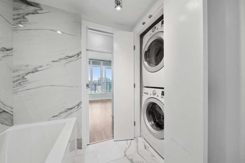 Welcome to Lotus by renowned developer Cressey. This renovated 1-bedroom condo, offers prime connectivity near rapid transportation. Step into modern elegance with sleek finishes and high-end fixtures. Enjoy a spacious bedroom, gourmet kitchen with stainless steel appliances, and a private balcony with city views. Plus,indulge in resort-style amenities including an indoor swimming pool, hot tub, rejuvenating steam room, and exercise center. Perfect for first-time buyers or savvy investors seeking upscale living and convenience. Don't miss this rare opportunity for refined living in the heart of Richmond! 1 parking and 1 storage included.
