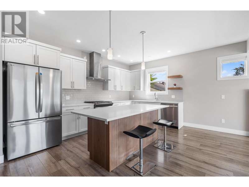 Welcome to 1753 KLO Road – a stylish and spacious 3-storey half-duplex located in one of Kelowna’s most desirable neighborhoods, offering flexible multi-generational living with no strata fees. This well-designed home features a total of 5 bedrooms plus a den, 3 full bathrooms, and 1 powder room, including a fully self-contained 1-bedroom suite with its own entrance, kitchen, bathroom, and laundry—perfect for extended family or rental income. On the main floor, you’ll find soaring 10-foot ceilings, wide-plank flooring, and a bright open-concept layout. The kitchen is equipped with a large island and stainless steel appliances, flowing into the living and dining areas with direct access to a sunny south-facing backyard with partial fencing—great for outdoor relaxation or entertaining. This level also includes a convenient bedroom and powder room, ideal for guests or a home office setup. Upstairs offers three spacious bedrooms and two full bathrooms, including a generous primary suite with a 5-piece ensuite and oversized walk-in closet. A flexible den area provides additional space for work, study, or play. The lower level includes a 1-bedroom in-law suite with separate entrance and laundry, providing excellent flexibility for guests, tenants, or family. Additional highlights include a double garage, extra parking, and a low-maintenance yard. Ideally located near shops, schools, golf courses, the lake, and Kelowna’s best wineries. (id:58403)