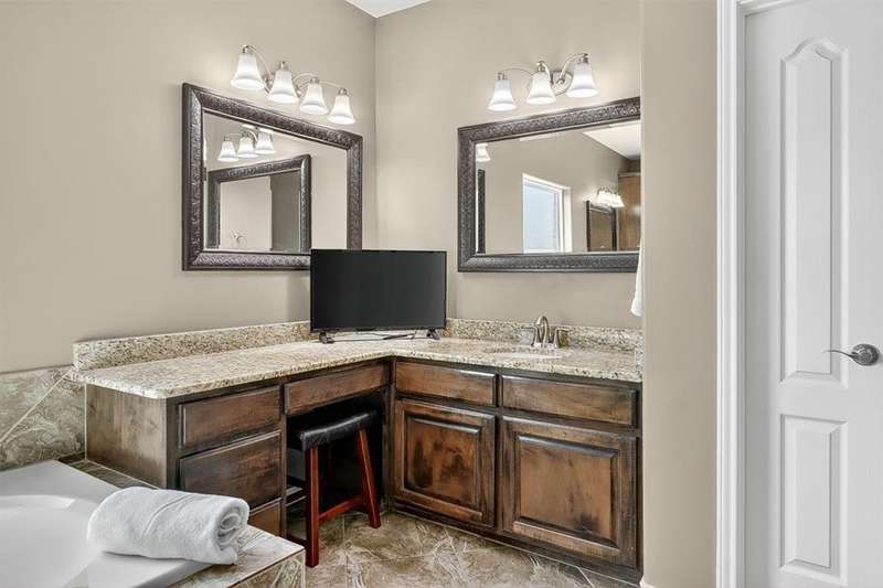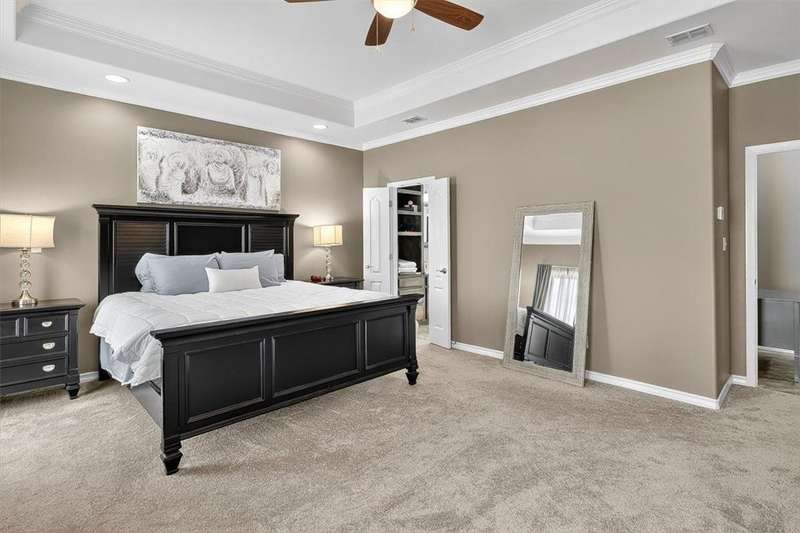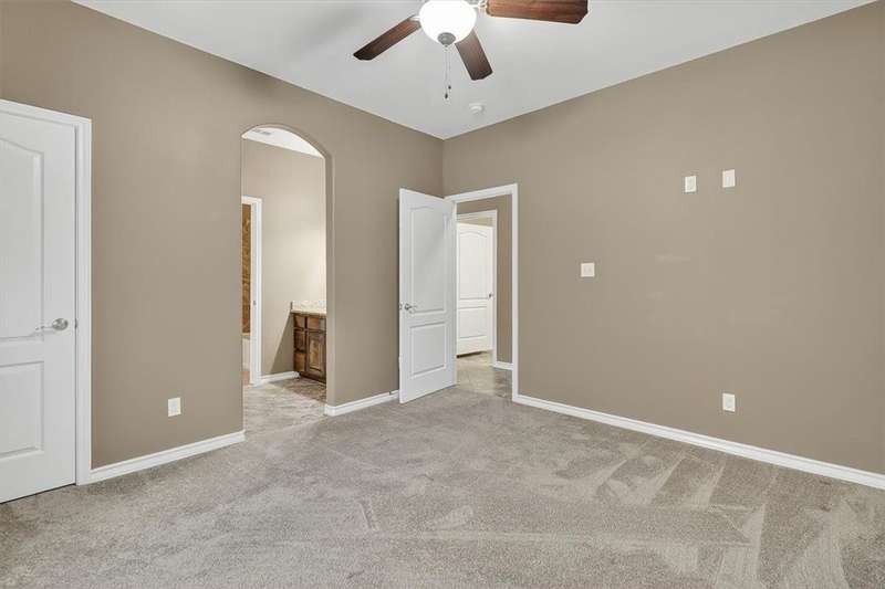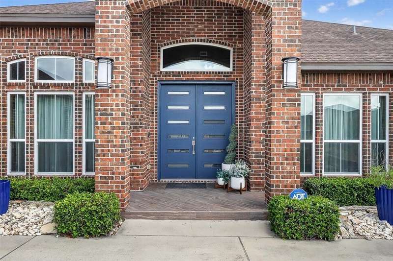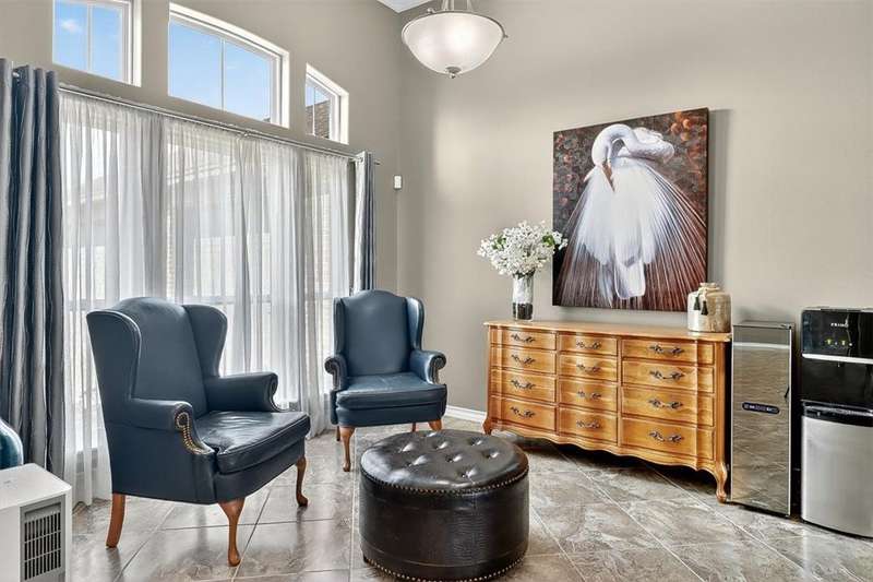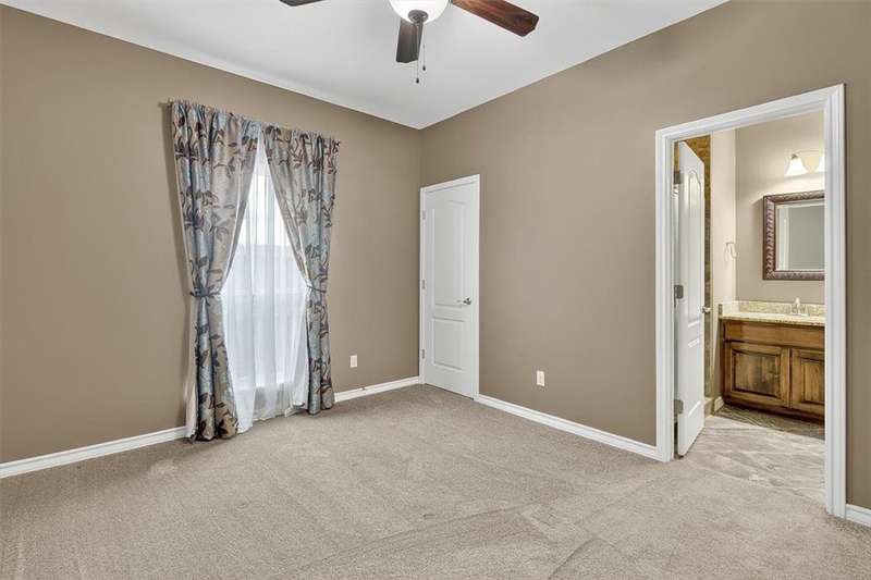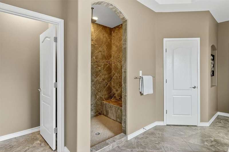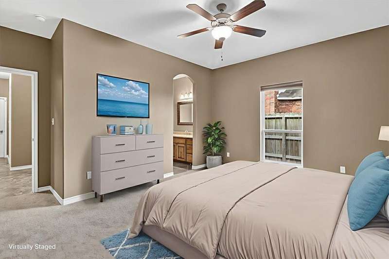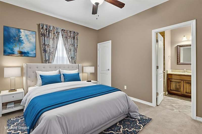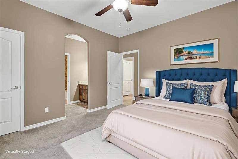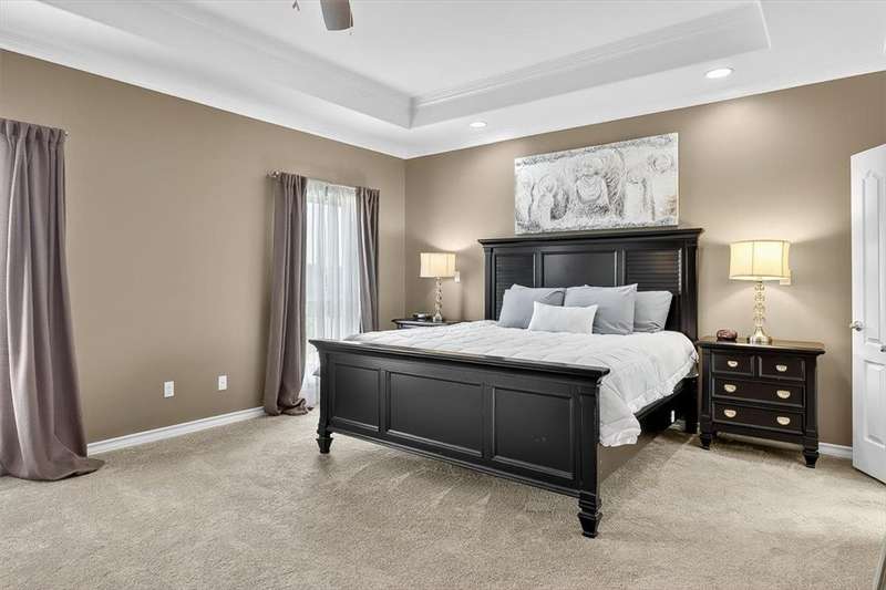 Luxury awaits in this meticulously maintained 4-bedroom, 3-bath, 3-car garage home with a desirable 3-way split floorplan. The elegant entry opens to a formal dining room and French-door office. The inviting living area features a cozy fireplace, recessed lighting, and expansive windows that bathe the home in natural light. A chef's kitchen showcases custom cabinetry, glass-tile backsplash, center island, walk-in pantry, stainless steel double ovens, professional gas cooktop, and a sunlit breakfast nook overlooking the covered patio. The private owner's suite boasts trayed ceilings, a spa-inspired jetted tub and custom shower, dual vanities, an oversized walk-in closet with built-ins, and private access to the patio and pool. Two large secondary bedrooms share a beautifully designed Jack & Jill bath, while a spacious guest suite enjoys its own full bath. A generous game room provides flexible space for recreation, media, or entertaining. Step outside to a private retreat with covered patio, custom outdoor kitchen with bar seating, sparkling pool, lush landscaping, and sweeping views. Architectural details such as arched entries, crown molding, premium flooring, vaulted ceilings, and custom lighting enhance the home's timeless appeal. A 3-car garage, circular driveway, and custom gated fencing complete this remarkable property.