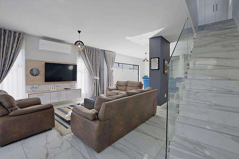 Welcome to this entertainer?ÇÖs dream! This stunning double-storey family home in Sandown offers the perfect blend of modern comfort, style, and functionality. Step through the grand front entrance into a spacious open-plan lounge, dining area, and kitchen, all seamlessly flowing through glass sliding doors to the outdoor entertainment area. Outside you?ÇÖll find a firepit, expansive garden, and sparkling pool ?Çö the perfect setting for family gatherings or entertaining guests. The ground floor also features two well-sized bedrooms serviced by a family bathroom, along with a convenient study, ideal for working from home. Upstairs, discover three additional bedrooms. The master suite boasts a luxurious walk-through closet and private en-suite bathroom, creating a serene retreat, while the remaining two bedrooms are serviced by a stylish family bathroom. Parking is a breeze with the double automated garage that leads directly into the property. Don?ÇÖt miss your chance to own this remarkable home in one of Sandown?ÇÖs most sought-after neighbourhoods!