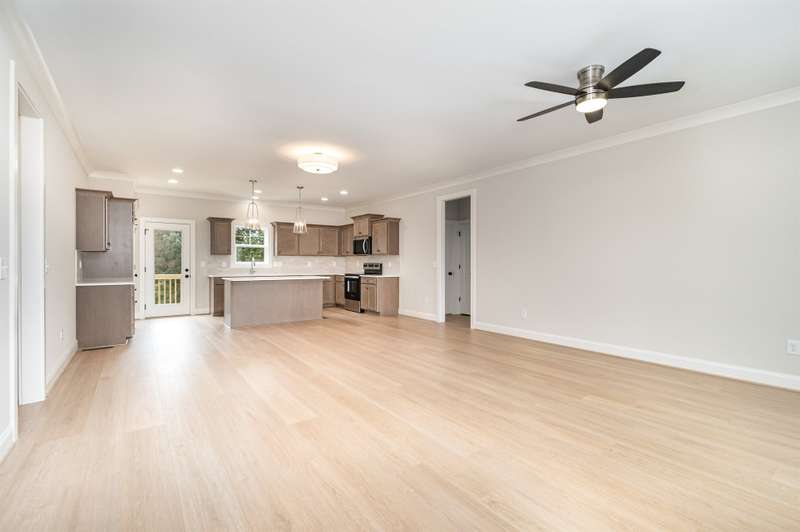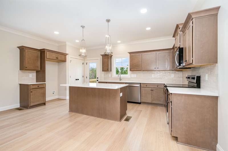 Come enjoy easy living in Stokesdale's newest community Knight Farm! This convenient location offers a country-like setting with easy access to Greensboro, Madison and Kernersville. This beautifully crafted custom home is built by Stafford Homes of the Triad. This one level home has everything you'll need: 3 beds/2 baths, split floor plan with oversized living room, primary suite boasting a huge walk-in closet & spa-like bathroom with double vanities and large walk in shower. The kitchen, dining & living room all blend together to create a wonderful gathering space. Kitchen features include: large center island, gorgeous soft close door cabinets, quartz countertop, tile backsplash & Whirlpool stainless steel appliances. Full bath with secondary bedrooms on either side round out this fantastic layout. The best is yet to come when you step outside to the oversized deck to enjoy the expansive private wooded back yard! Deed Restrictions but no HOA dues. Hurry this home will not last long!