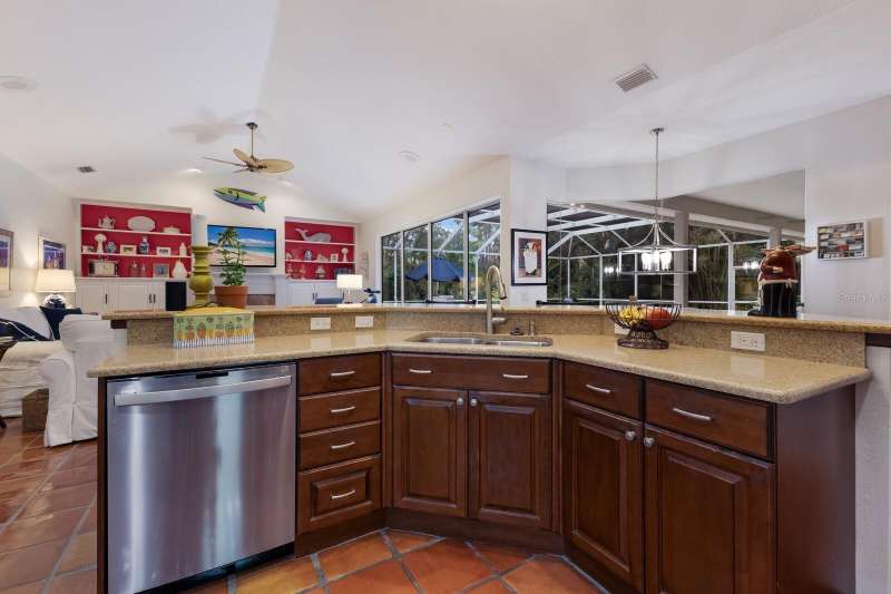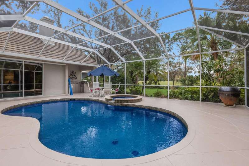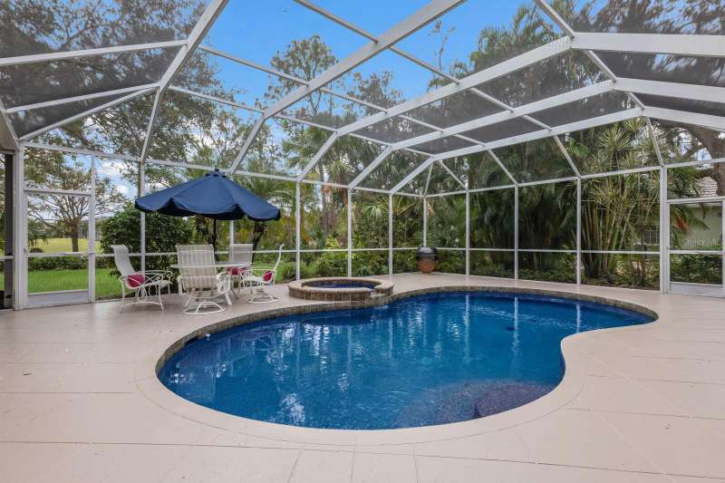 Price Improvement- Best Value in the Estate Homes in University Park Country Club situated on a Beautiful Lush oversized Lot with Private Views of the Golf Course! It's not just a home... It's a Lifestyle! Located behind the Gates of the award-winning University Park Country Club...this custom-built Bamboo Homes masterpiece exudes distinctive architectural design and attention to detail! It is nestled on an oversized private lot, surrounded by Florida's natural beauty, and views of the 3rd Green! Step through double leaded art glass doors into a breathtaking foyer where soaring ceilings and a wall of glass pocketing doors invite you to experience the seamless integration of formal & casual living spaces with expansive outdoor areas. Your outdoor summer kitchen, heated pool, and spa create the perfect backdrop for entertaining friends & family, all while enjoying the lush landscape and tranquil views. The stunning kitchen is a chef's dream featuring custom wood cabinetry, stone countertops, a large breakfast island, a huge walk-in pantry, updated appliances plus a cafe niche with captivating views through a beautiful aquarium window. The adjoining great room is perfect for relaxation, boasting sliding glass doors to the lanai, a wall of built-ins with a cozy fireplace, and high ceilings that enhance the airy feel. Retreat to your luxurious, expansive primary suite with a cozy sitting area overlooking the pool and private lush landscape, a wall of custom cabinetry & 2 walk-in closets. The spa-like ensuite bath has been updated and features dual sinks, a soaking tub and a walk-in shower for ultimate comfort. Enjoy a thoughtful split floor plan with two additional large en-suite bedrooms and baths plus a versatile 4th bedroom currently used as a den, adorned with custom built-ins and a half bath. Additional features not to be missed are: An extended 2+ Garage with a separate golf cart entry, plantation shutters , recessed lighting, a sound system and most importantly A NEW ROOF in 2019 for peace of mind! UPCC boasts a top-rated 27-hole Golf Course, 11 lighted Har Tru Tennis Courts, a state-of-the-art fitness center, pickleball courts, lawn croquet and the newly renovated Park Grill & Restaurant. Enjoy a vibrant community with various membership options tailored to fit your lifestyle! Don't miss your chance to own this impeccable home in a coveted community!