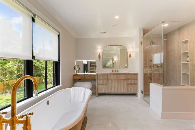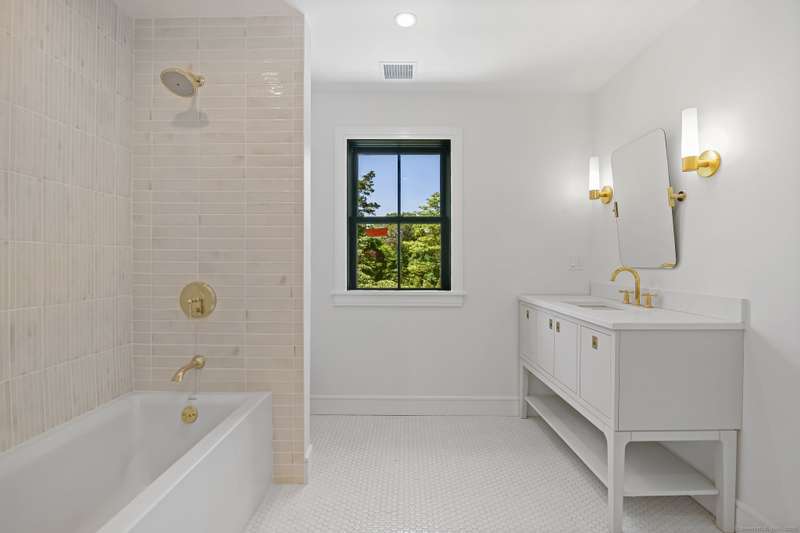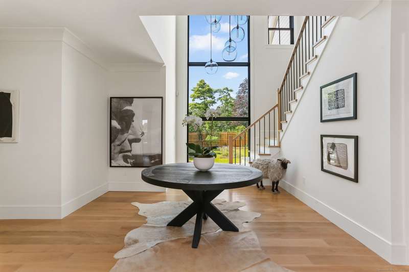 Discover sophisticated modern luxury in the heart of New Canaan This stunning, newly constructed 6,500 square foot residence offers a unique blend of modern design, luxurious finishes, convenient location. Overlooking the iconic God's Acre church steeples, this exceptional home is the latest creation by a local designer renowned for crafting one meticulously curated project per year. Step inside and be captivated by dramatic, light-filled, open-concept living spaces, including a grand foyer featuring a 20-foot window entry and a striking iron staircase. Nine-foot ceilings, wide-plank white oak floors, special ceiling details, and expansive floor-to-ceiling Marvin windows amplify the sense of space and elegance. The show-stopping kitchen is a culinary masterpiece, boasting an oversized seating island, a built-in breakfast nook, and top-of-the-line stainless steel appliances. A convenient pantry and a spacious dining area provide the ideal setting for entertaining on a grand scale. The a