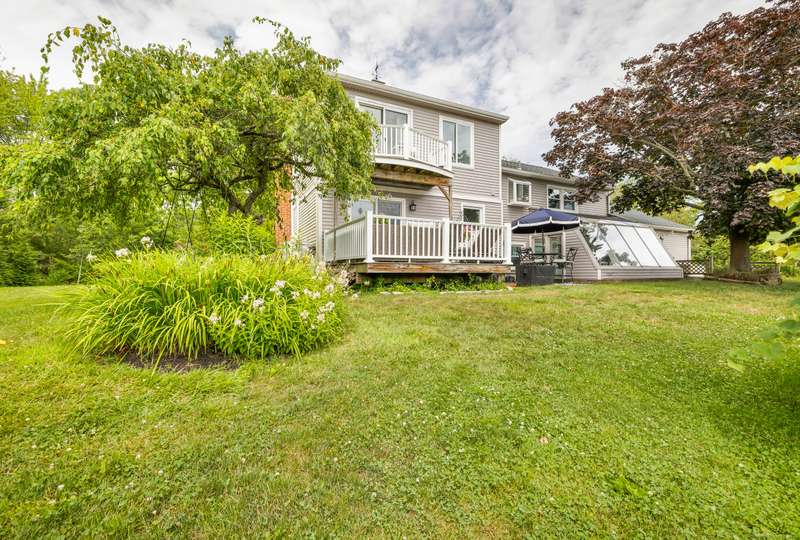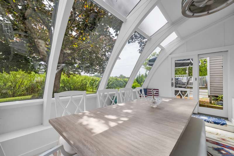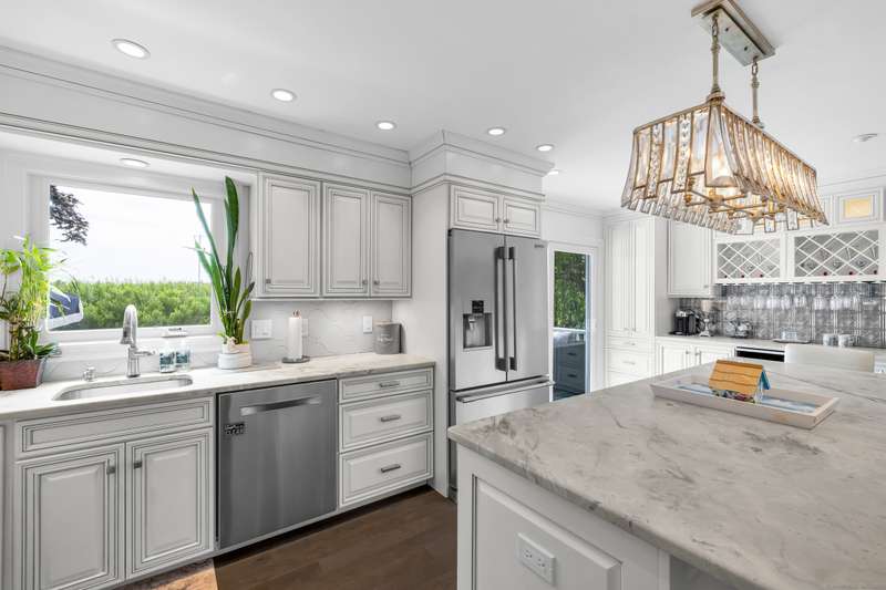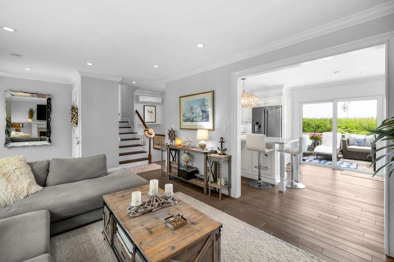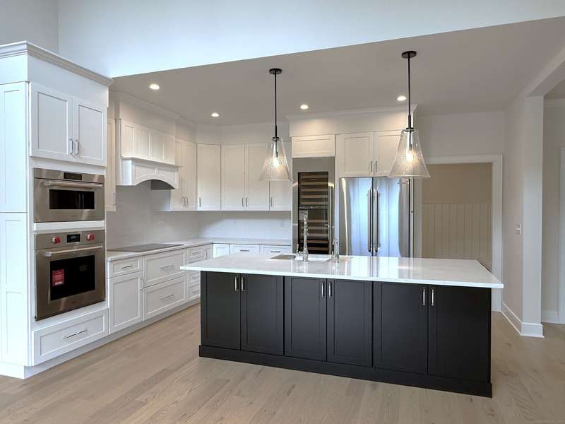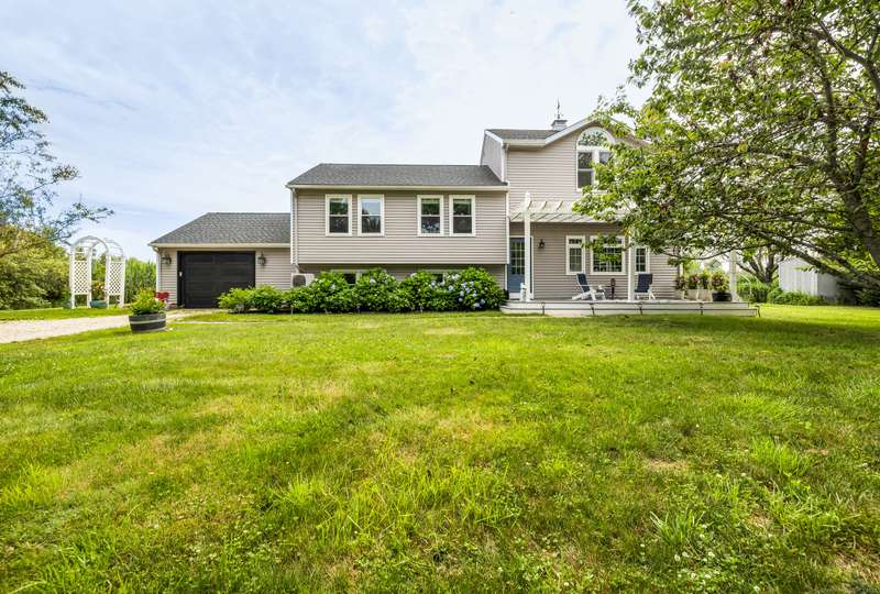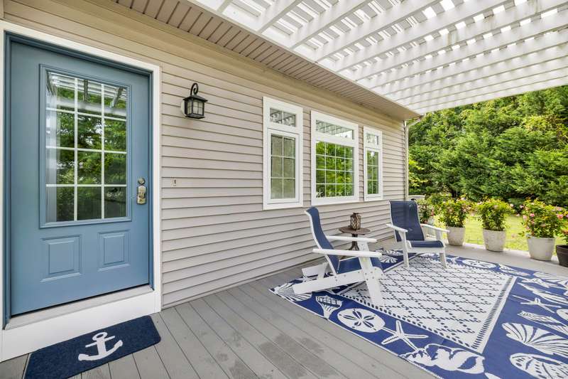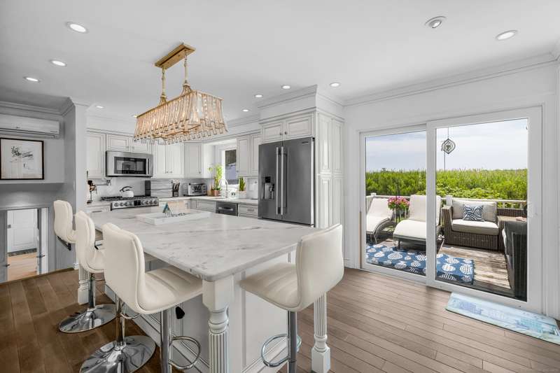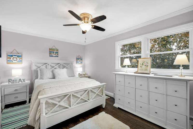 Truly exceptional turnkey property sits on a peaceful 1-acre lot along the desirable, sidewalk-lined Whitfield Street. This fully renovated and thoughtfully reimagined home offers light-filled living spaces, beautiful hardwood flooring, and crown molding throughout. Charming curb appeal welcomes you with an inviting front porch that leads into a living room with a gas fireplace. The open-concept layout flows seamlessly into a stunning kitchen, featuring custom cabinetry, a large center island, stainless steel appliances, and a breakfast/dry bar with wine fridge. The luxurious primary suite occupies the entire upper level and offers two walk-in closets with built-ins, a cathedral ceiling, private balcony with fabulous water views, and a spa-inspired bath complete with a soaking tub, walk-in shower with designer tile and glass enclosure, and a dual-sink vanity. The second floor offers two additional bedrooms, a beautifully remodeled full bath, and an open style office; perfect for remote