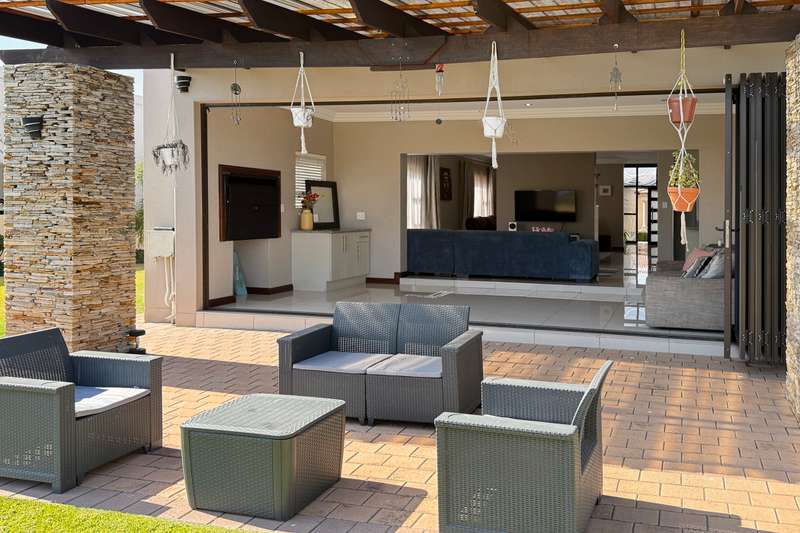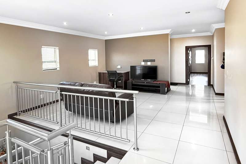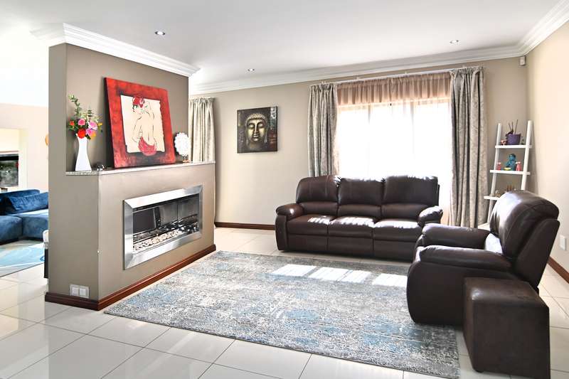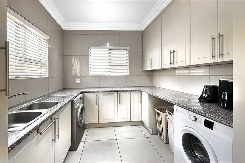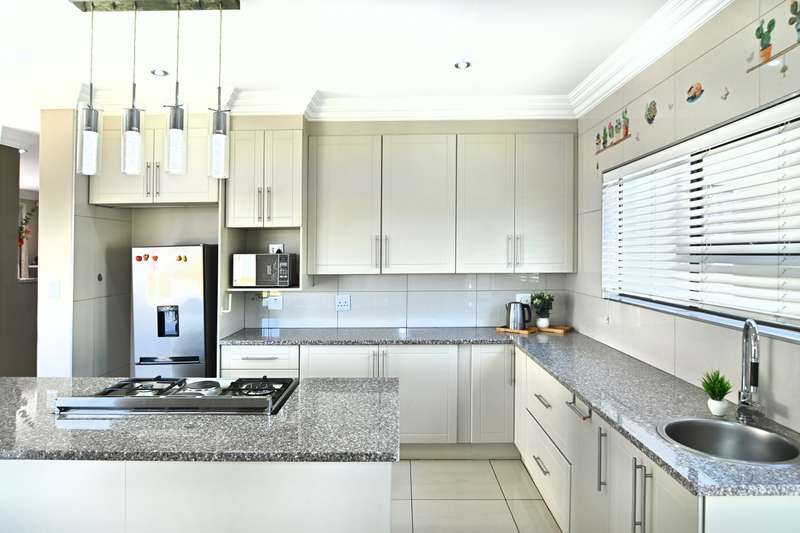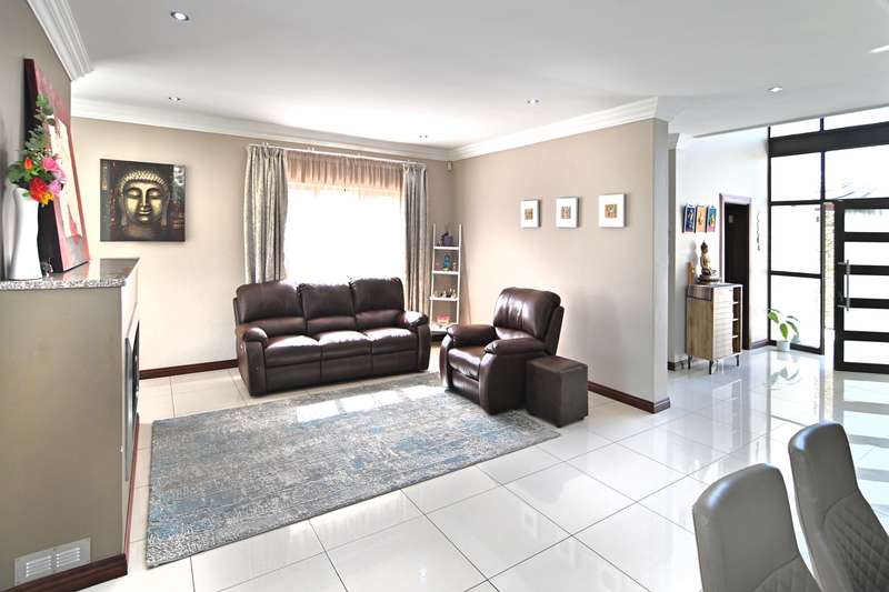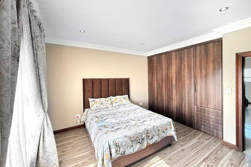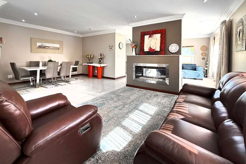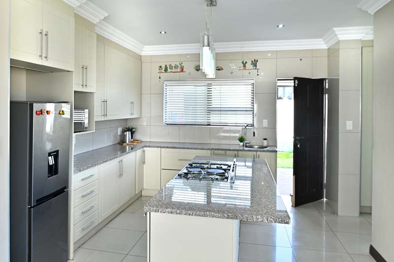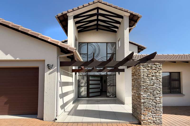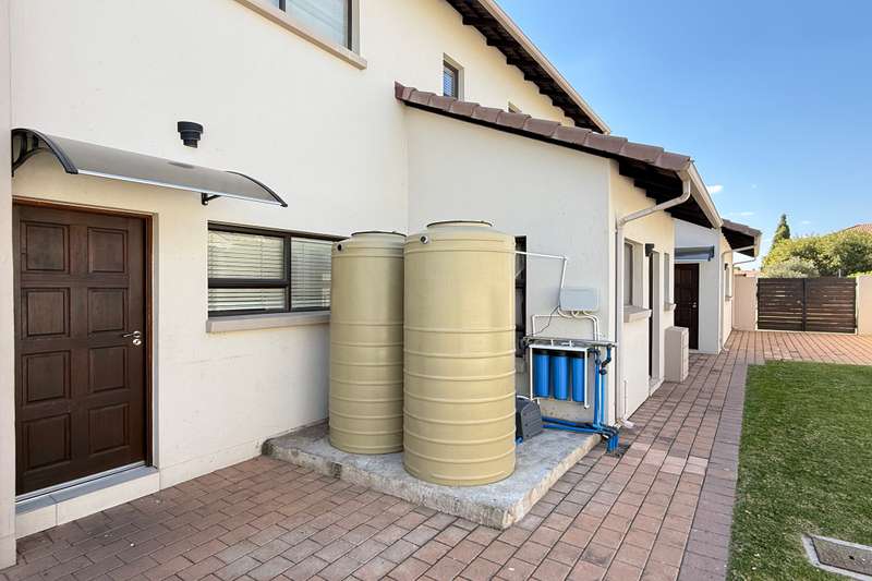 This beautifully designed, self-sufficient home offers the ultimate in modern family living. Located in this sought after estate, this property blends luxury, comfort and sustainability making it the perfect retreat for discerning buyers. Step through an elegant glass door into a double volume entrance hall, complete with a statement chandelier and ideal North – West orientation. The spacious living and dining areas are separated by a feature gas fireplace, creating cozy yet defined spaces for entertaining and relaxing. The open plan gourmet kitchen is a chefs delight with granite countertops; a gas and electric combo hob fitted in a center island and an adjacent scullery that accommodates three appliances. A closed entertainment room with a built-in braai opens via stacker doors to a covered patio and manicured garden, including a jungle gym for the little ones. A downstairs guest bedroom or work from home office provides ultimate versatility, complemented by a guest toilet on the same level. Make your way upstairs to a pyjama lounge perfect for relaxing family time or homework sessions. Three spacious bedrooms feature laminate flooring and built-in– cupboards. The main bedroom is en-suite whilst the two additional bedrooms share a full family bathroom. An additional storeroom upstairs ensures everything has its place. The home also has triple auto garages which includes a tandem setup for extra safe secure parking. The home has a private en-suite helper’s quarters. A huge bonus on this home is the solar power system, borehole and Two Jo Jo tanks which supplies the entire home with water and electricity. The Estate has great lifestyle perks which includes 24Hr security, clubhouse, tennis and Volleyball courts, Swimming pools and scenic walking trails. The estate is also very well located close to the Sagewood Curro School, other top schools, shopping centers, medical facilities and easy highway access. Disclaimer: Whilst every care has been taken in the preparation of this listing we cannot be held responsible for any errors/omissions that may occur.