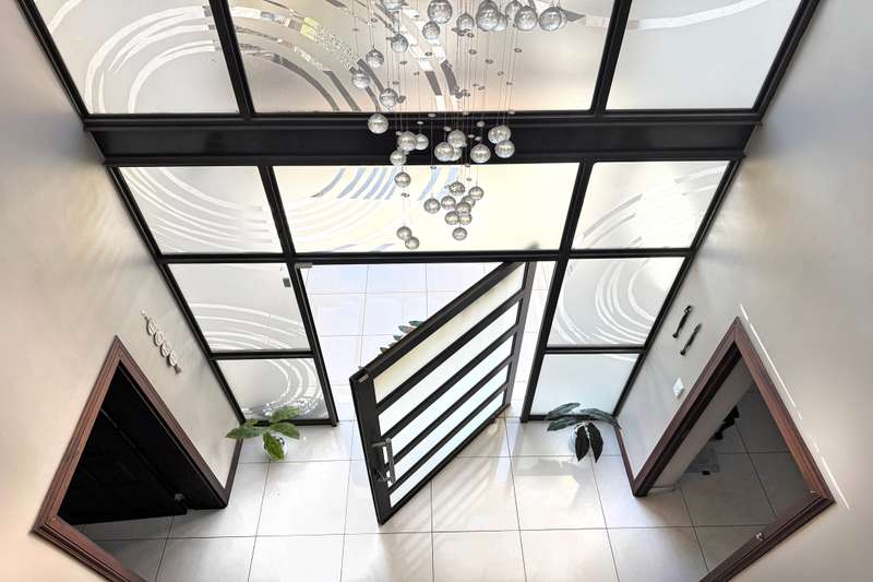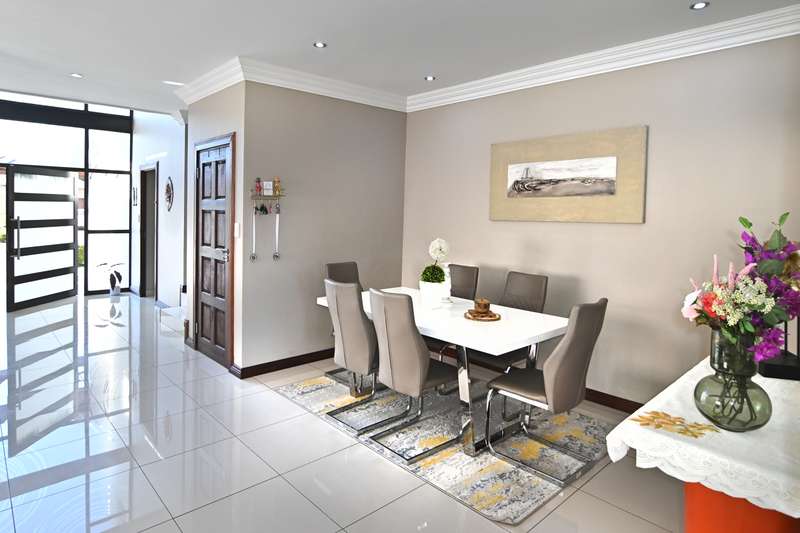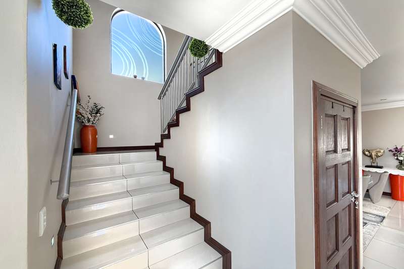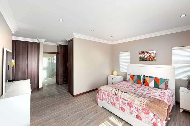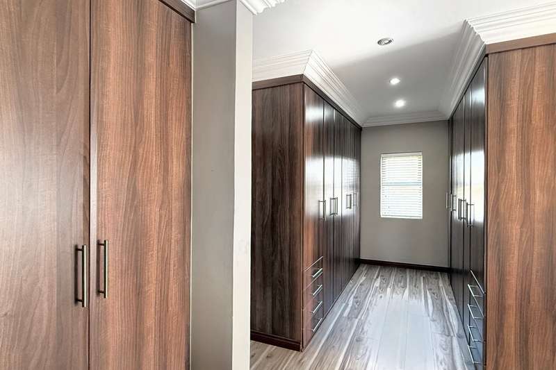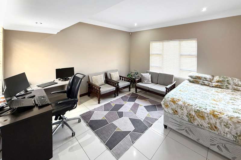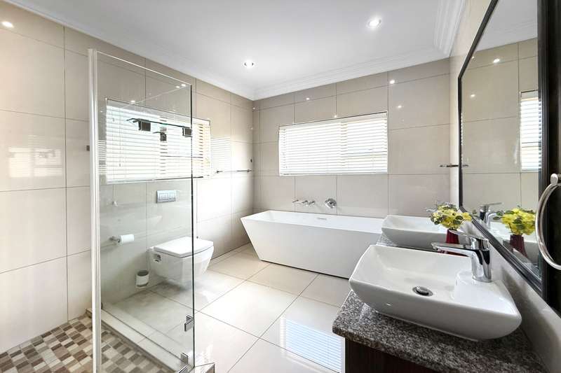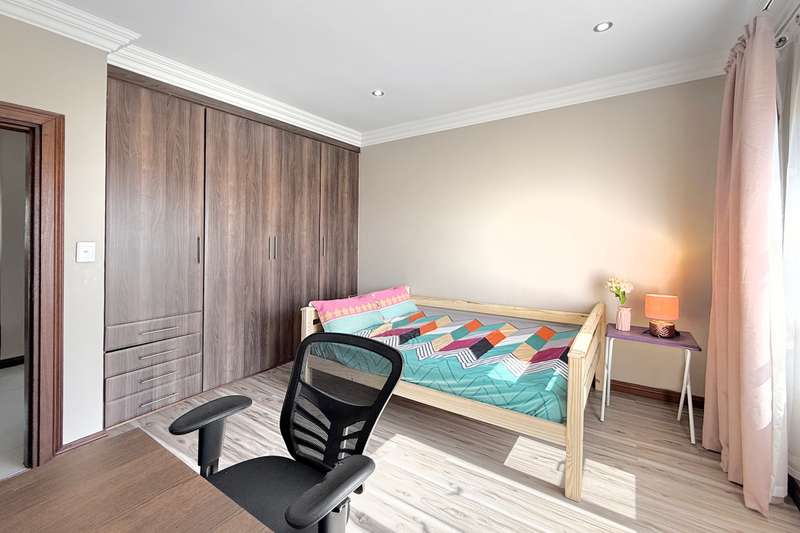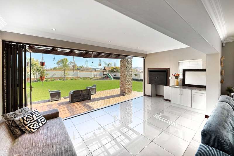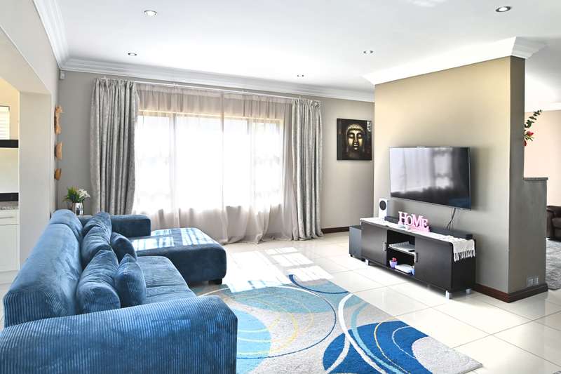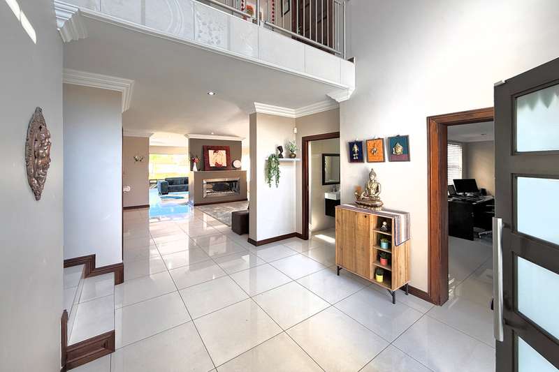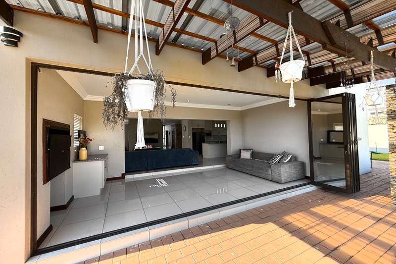 This beautifully designed, self-sufficient home offers the ultimate in modern family living. Located in this sought after estate, this property blends luxury, comfort and sustainability making it the perfect retreat for discerning buyers. Step through an elegant glass door into a double volume entrance hall, complete with a statement chandelier and ideal North – West orientation. The spacious living and dining areas are separated by a feature gas fireplace, creating cozy yet defined spaces for entertaining and relaxing. The open plan gourmet kitchen is a chefs delight with granite countertops; a gas and electric combo hob fitted in a center island and an adjacent scullery that accommodates three appliances. A closed entertainment room with a built-in braai opens via stacker doors to a covered patio and manicured garden, including a jungle gym for the little ones. A downstairs guest bedroom or work from home office provides ultimate versatility, complemented by a guest toilet on the same level. Make your way upstairs to a pyjama lounge perfect for relaxing family time or homework sessions. Three spacious bedrooms feature laminate flooring and built-in– cupboards. The main bedroom is en-suite whilst the two additional bedrooms share a full family bathroom. An additional storeroom upstairs ensures everything has its place. The home also has triple auto garages which includes a tandem setup for extra safe secure parking. The home has a private en-suite helper’s quarters. A huge bonus on this home is the solar power system, borehole and Two Jo Jo tanks which supplies the entire home with water and electricity. The Estate has great lifestyle perks which includes 24Hr security, clubhouse, tennis and Volleyball courts, Swimming pools and scenic walking trails. The estate is also very well located close to the Sagewood Curro School, other top schools, shopping centers, medical facilities and easy highway access. Disclaimer: Whilst every care has been taken in the preparation of this listing we cannot be held responsible for any errors/omissions that may occur.