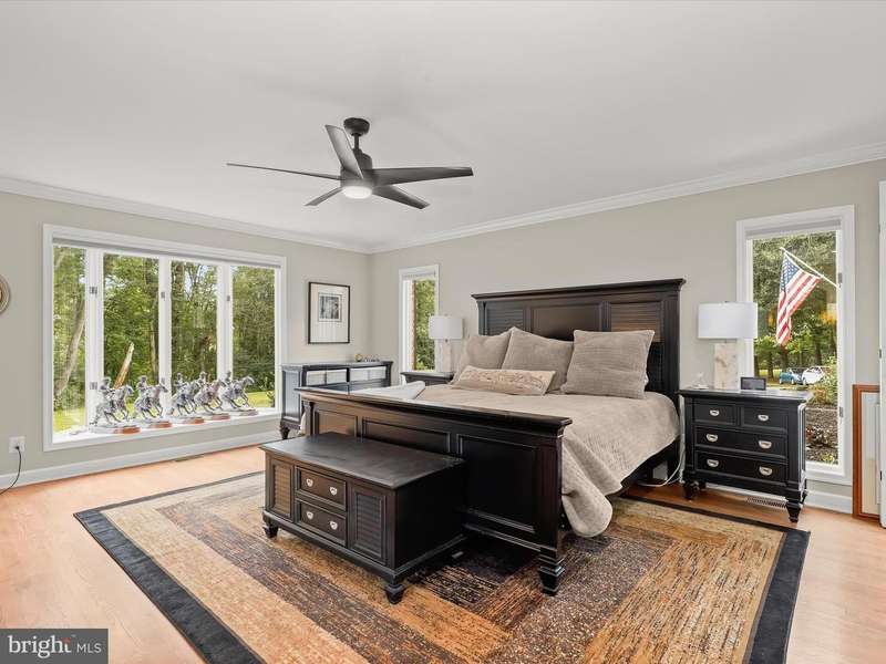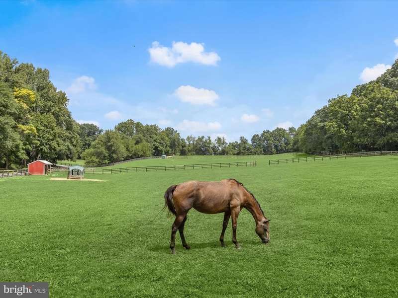 Set on 25 picturesque acres with a meandering creek, this world-class equestrian estate offers an unparalleled blend of professional horse facilities and refined country living-all within an easy drive of Washington D.C., Baltimore, and Northern Virginia. Designed with precision, care, and comfort in mind, the property is turnkey for the serious equestrian, trainer, or discerning private owner. At the heart of the farm are two exceptional barns, totaling 45 stalls, thoughtfully designed for safety, convenience, and efficiency. The main barn boasts 29 matted stalls across two wide 12-foot aisles, each equipped with its own fan, light, and timed outlet. Amenities include a climate-controlled lounge, two spacious tack rooms, a wash stall, an insulated laundry room, a utility room, and a massive loft with guest accommodations. Dedicated farrier lighting and ample tractor clearance make daily operations effortless. Just steps away are an indoor arena, a large shavings shed, an additional 7 stalls, and a hay storage container that keeps dust to a minimum. The second barn offers 9 matted stalls, a charming guest room, a full bath, and a two-bedroom suite ideal for visiting riders or staff. A vehicle lift in the barn provides space for on-site equipment maintenance. For the rider, the property features a large indoor arena with sand footing and lighting, powered by a leased solar panel array with five inverters in the attached workshop. Outdoor training spaces include a 175' x 275' arena with new footing, a 48-foot covered round pen, and a 4-horse ProWalk hot walker. Pastures are immaculately maintained, enclosed by safe wood fencing, and laid out for ease of rotation and turnout. Additional accommodations include a caretaker's cottage and barn apartment, both updated for comfort and practicality. The four-bedroom main residence blends casual elegance with warmth, featuring hardwood floors, two gas fireplaces, a great room with brick-surround fireplace, cathedral ceilings, and skylights, a formal dining room with built-ins, crown molding, and designer lighting, and a main-level primary suite with the flexibility to expand. The updated kitchen with island and stainless steel appliances, granite counters, opens to light-filled living spaces, and the unfinished basement with rough-in offers room to grow. The upper level provides three spacious bedrooms, one with an en-suite bath with a soaking jetted tub, a walk-in shower, and a walk-in closet. Outdoor living is elevated by a newly remodeled heated inground pool with fountains, new tile and plaster, a sun deck, and a covered patio surrounded by lush perennial gardens. Additional amenities include a Two-car attached garage with EV charger, an RV garage with 16-foot ceilings, 14-foot doors, and 100-amp service, designed for Class A RVs, large living quarter horse trailers, or future conversion to a gym, basketball court, breeding facility, or stallion station. Every detail of this estate, from the safe fencing to the solar power, from the manicured arenas to the luxurious living quarters, has been crafted for the ease of care and enjoyment of horse and rider alike. With proximity to top equine veterinary hospitals and premier showgrounds, this is a rare opportunity to own one of Montgomery County's finest equestrian properties. Shown by private appointment only.