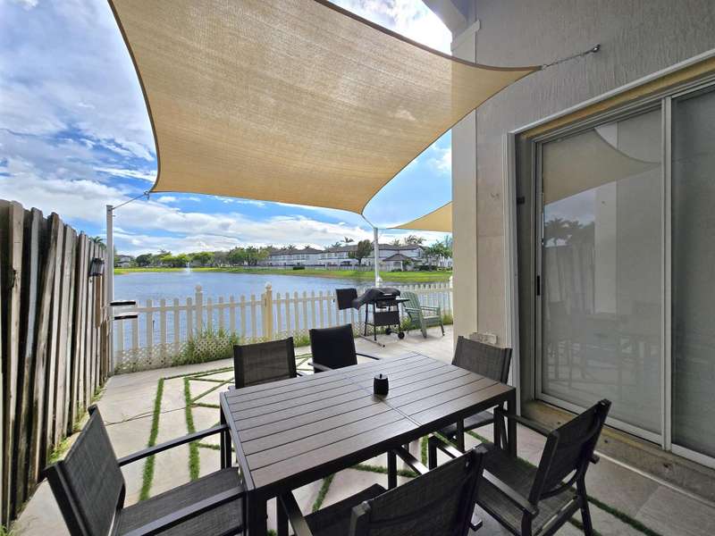 Discover this beautiful 3-bedroom, 3-bathroom home in the heart of Doral! Featuring one full bathroom conveniently located downstairs, this residence offers a spacious layout with a bright living room, formal dining area, and a separate family living and dining space -- perfect for entertaining or relaxing. The open kitchen overlooks the water, creating a serene and inviting atmosphere. Step outside to a private patio with breathtaking water views, ideal for morning coffee or evening gatherings. The home also includes a spacious garage and is currently having its exterior freshly painted. Located in a gated community close to top schools, shops, and major highways, this home combines comfort, elegance, and convenience.