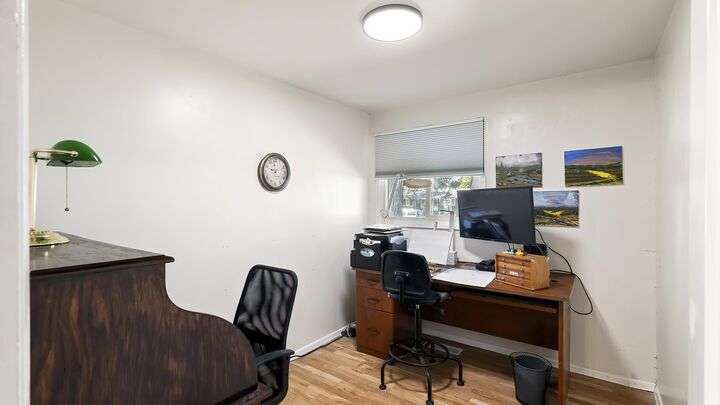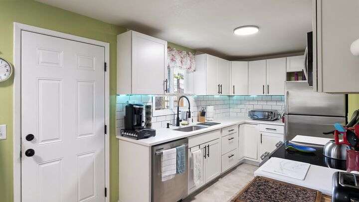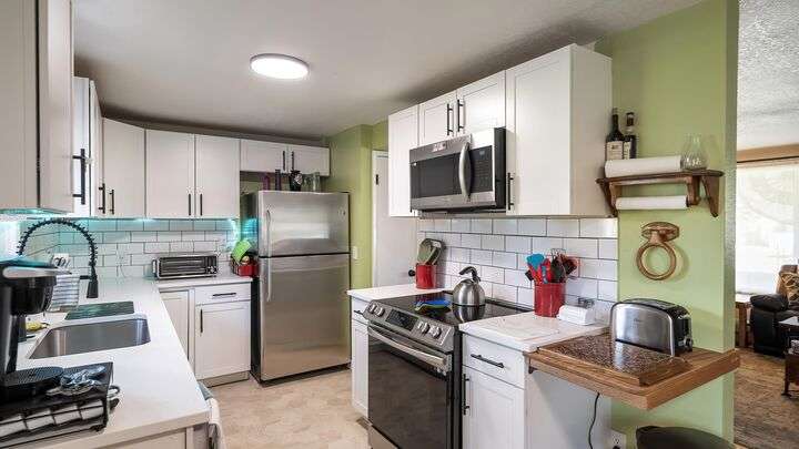 Great home with amazing qualities. Stunning kitchen with high end cabinets, Stainless appliances, Quartz countertops and under counter lighting. The kitchen has direct access to the extraordinary back yard. Elegant main floor master with half bathroom. Beautiful back patio for relaxing, entertaining and enjoying family and friends. 4-bedrooms, 1.5-bathrooms, Oversized 1-car garage with additional parking for cars or toys. Gas forced air heat and only minutes to shopping and services. This home is in great condition.