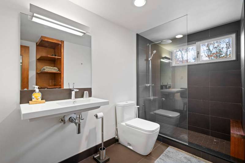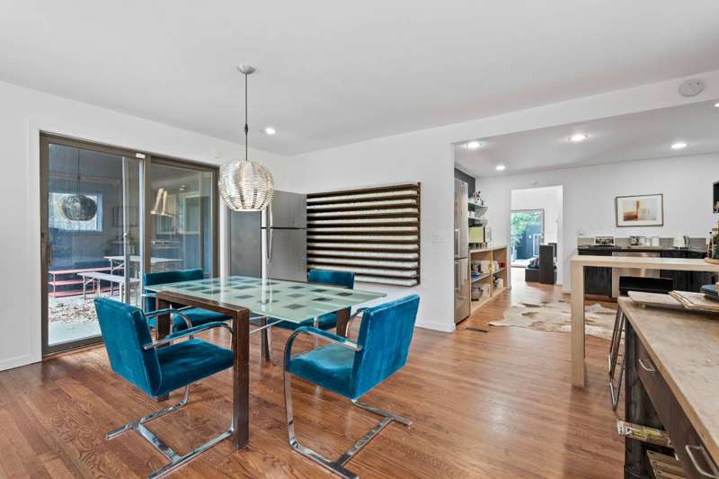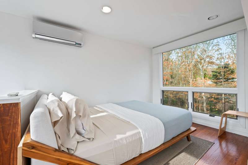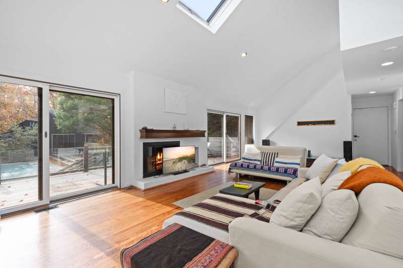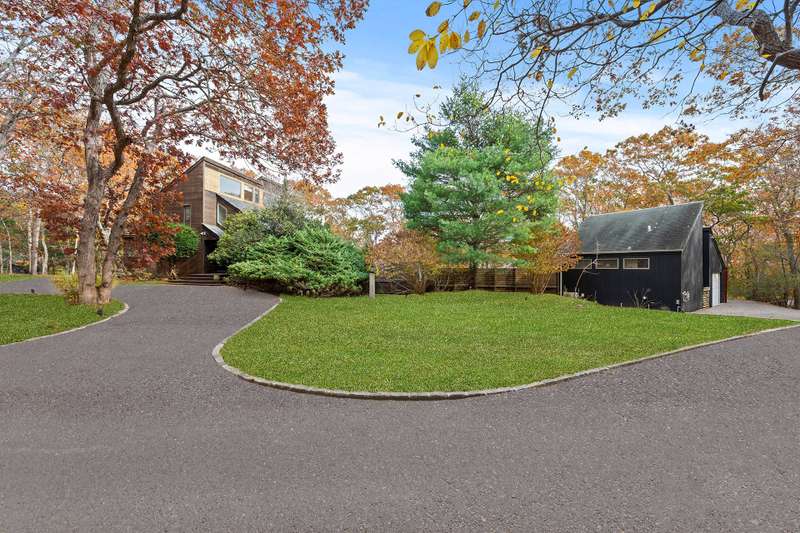 Beautifully situated on a quiet cul-de-sac residential lane, close to the shops of Amagansett, as well as the ocean beach, this bright and immaculate contemporary house is ideal. The 1.2-acre grounds are well-landscaped, offering privacy to the large sun deck and heated saltwater swimming pool. Bathed in natural light, the interior of the house features a living room with fireplace, high ceiling and glass doors to the poolside patio. The kitchen has been recently renovated with soapstone countertops, stainless steel farm sink, Bosch appliances, Bertazzoni refrigerator, and an elegant dining room. The four bedrooms and three full baths include a first-floor primary ensuite with fireplace and a wall of glass sliding doors leading out to the deck and pool area. The third floor offers the perfect space for a home office with distant ocean views. The finished lower level offers a large media/rec room, laundry room, and gym with egress. Outside, there is also a detached garage, lovely pool house with full bath and wet bar, and an outdoor shower.