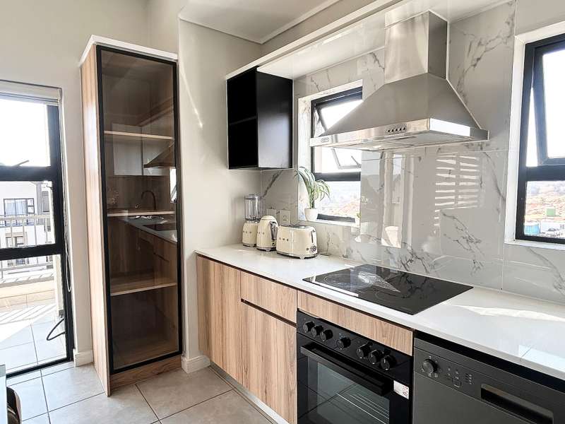 Offers from 1,800,000 will be considered as you Discover the epitome of luxury living in this exquisite penthouse nestled within the highly desirable Munyaka Estate. Featuring 2 spacious bedrooms and 2 modern bathrooms, this home includes a generous balcony, a spacious living area, 2 parking bays. With unparalleled elegance, style, and contemporary amenities, this remarkable residence offers breathtaking views of the Crystal Lagoon and the dynamic skyline of Waterfall City. As you enter, you are welcomed by a bright and airy open-plan living space adorned with soaring double-volume ceilings and expansive floor-to-ceiling glass doors that invite an abundance of natural light. The seamless flow between the lounge, dining area, and designer kitchen creates a sophisticated yet inviting ambiance—perfect for entertaining guests or enjoying everyday life. The kitchen is a true masterpiece, equipped with high-end appliances and stunning Caesarstone countertops. The master en-suite serves as a serene retreat, featuring sleek built-in wardrobes and direct access to a private balcony. The luxurious bathroom is designed for relaxation, complete with a freestanding tub and a rainfall shower, providing both comfort and indulgence. A highlight of this penthouse is the exclusive rooftop terrace, ideal for entertaining against a backdrop of sweeping panoramic views. Complete with a built-in braai and ample space for outdoor seating, it’s perfect for sunset dinners, casual weekend gatherings, or quiet evenings under the stars. Residents of Munyaka benefit from access to world-class amenities, including the stunning Crystal Lagoon—perfect for kayaking, paddleboarding, or simply lounging by the water. The estate's lifestyle centre features a fully equipped gym, an upscale spa, a stylish restaurant, and a professional business lounge. Enhanced security measures include 24-hour biometric access, CCTV monitoring, and regular patrols, ensuring your peace of mind. This penthouse represents a rare opportunity to acquire a premier property in one of Johannesburg’s most prestigious estates. Whether you are a discerning homeowner or an investor seeking a prime asset, this exceptional residence offers a lifestyle of unparalleled comfort and luxury.