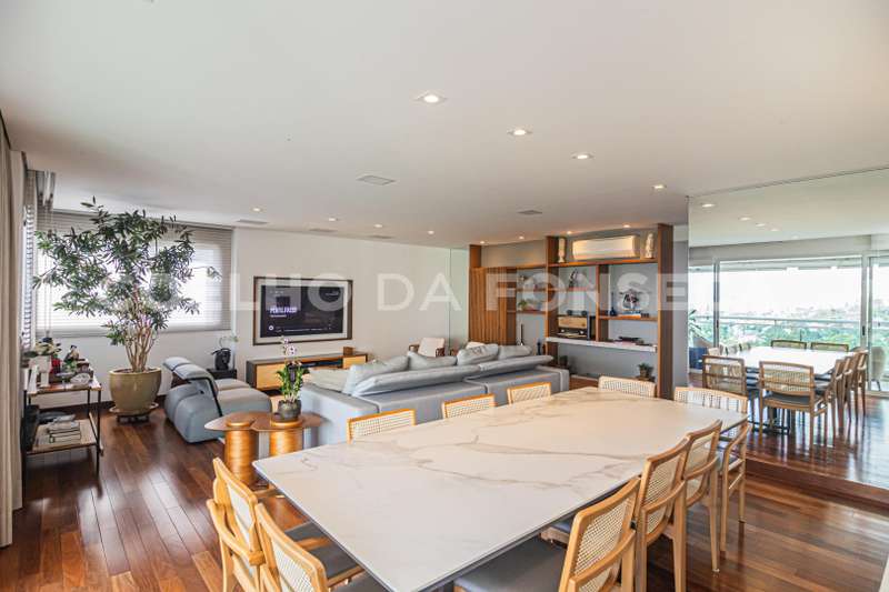Apartamento no bairro Brooklin Paulista com 240m² área privativa/útil, 4 dormitório(s), 3 suíte(s), 4 vaga(s), 5 banheiro(s), escritório, terraço, depósito, mobiliado (a), ar condicionado, dep. de empregados, reformado (a), varanda gourmet.