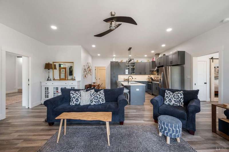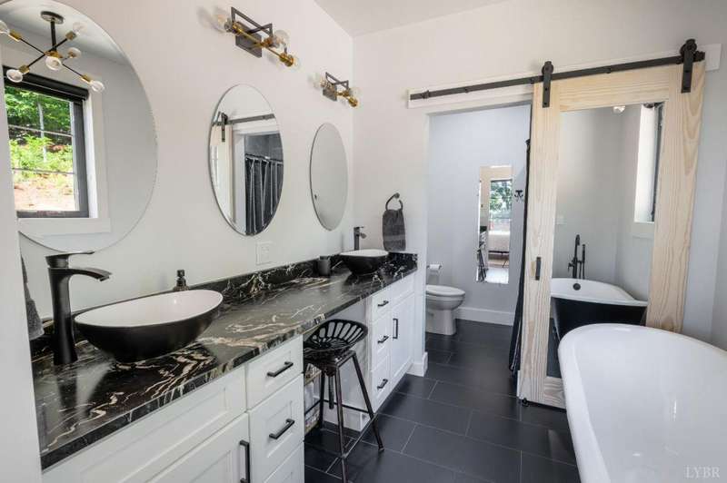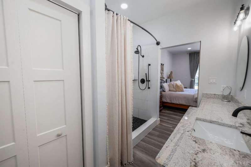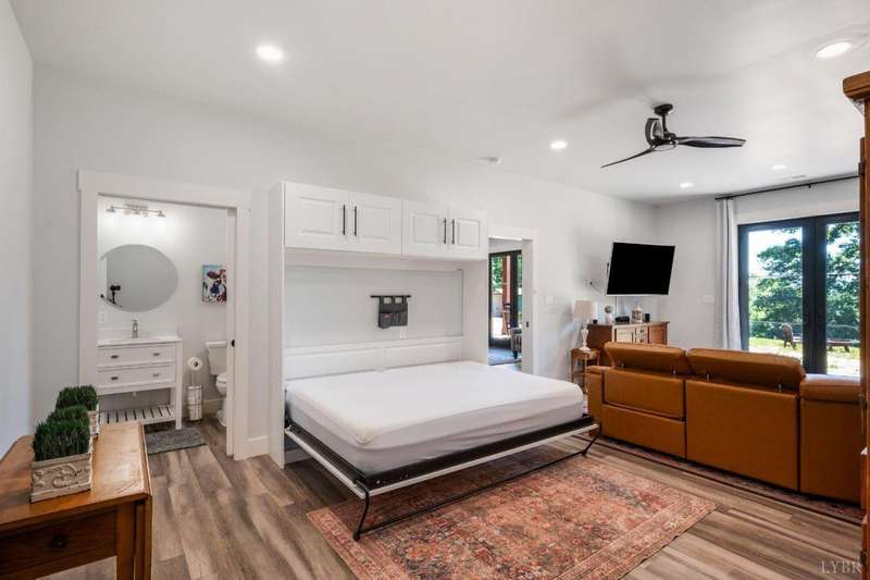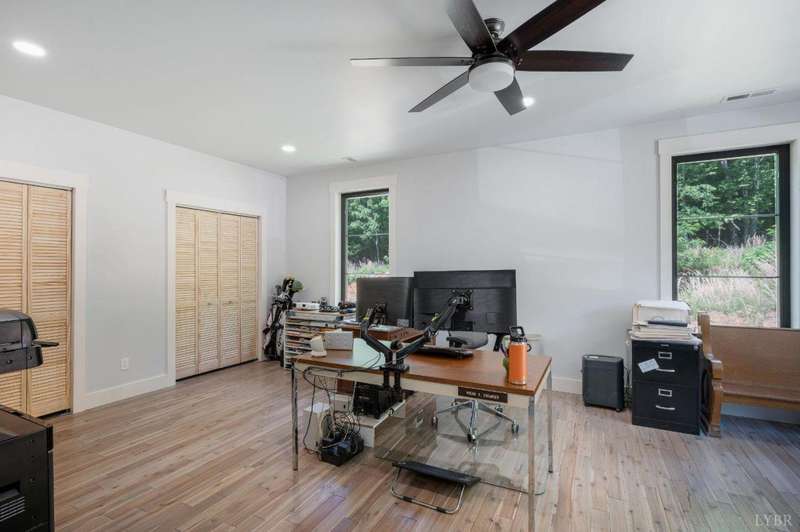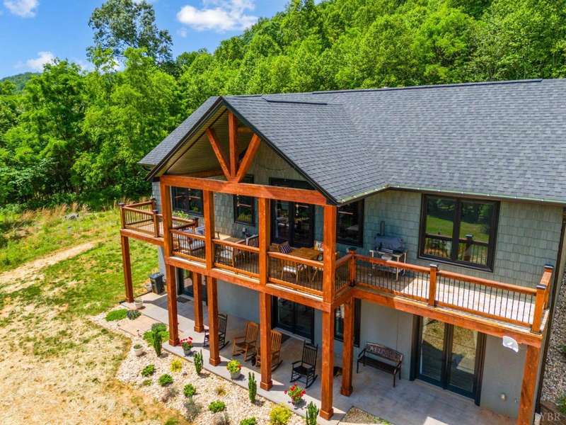 This custom designed home is situated on 3 acres in the Foothills of the Blue Ridge Mountains. The home offers high quality materials thru out with 2 primary suites on the main level with full baths, a half bath, laundry room, office, kitchen with granite counter tops, stainless steel appliances and a living room that leads out to an expansive cedar covered porch to enjoying the tranquil setting. The terrace level has a bedroom with a full bath, a den with a Murphy bed and private full bath, kitchen, the living room includes a gas log fireplace, nice covered patio, laundry room and a bonus room for future expansion. There is 400 amp service for the home which is prepped for whole house generator, Englander wood stove, Anderson windows and doors along with many more construction details. There is storage building with 200 amp service, a carport, a full hook up for an RV, two driveways one for the terrace level and one for the main level. Ideal for a multiple generational living.