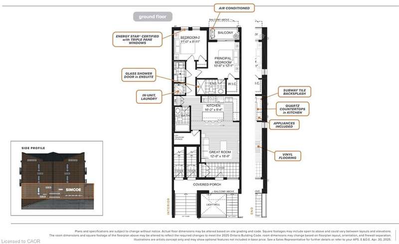 Brand New ENERGY STAR® Certified stacked townhomes! Located just minutes from Sunrise Shopping Centre with quick access to Highways 7/8 and 401. Flexible move-in dates! Secure your favourite unit today and move in anytime between now and January. Enjoy exclusive discounts on Rogers TV and internet services. Visitor parking & EV chargers available. Rent includes one parking spot. Welcome to The Simcoe (end unit)— a spacious 2 bed, 2 full bath suite with high ceilings, premium finishes, large windows, and a bright open concept layout. The kitchen features sleek quartz countertops, subway tile backsplash, full size stainless steel appliances, and a large island with breakfast bar seating. The master bedroom features an ensuite with a glass enclosed walk-in shower, a large walk-in closet, and direct access to your own private balcony overlooking the pond and countryside. Enjoy the convenience of in-suite laundry and central air conditioning and heat for year round comfort. This family friendly community offers a brand new playground, basketball court, and scenic trails — perfect for staying active or simply enjoying the outdoors. Sunrise Shopping Centre is just minutes away giving you quick access to everything you need - Walmart, Old Navy, Shoppers Drug Mart, Winners, Starbucks, Canadian Tire, Dollarama, and more. We are pet-friendly! Tenant pays utilities. Landlord responsible for furnace filter replacements and water softener maintenance. Actual unit may vary in layout; interior finishes are consistent. Great selection of 2 & 3 bedroom units available. Get in touch to schedule your private tour!
